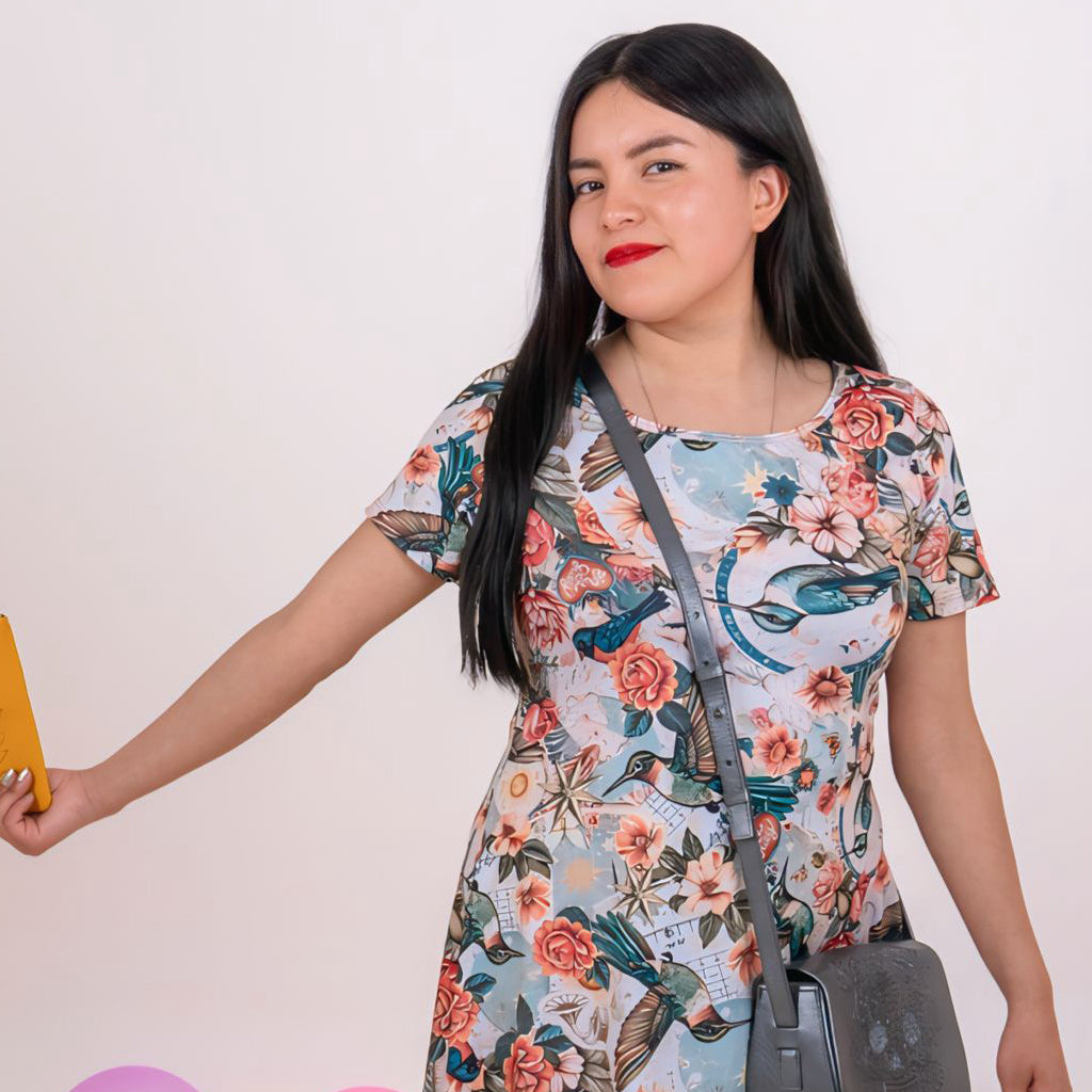 Vestido estampado full print manga corta - Modelo LAS BRISAS