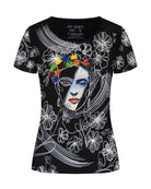 La playera FR Líneas es una audaz declaración de estilo inspirada en la fuerza femenina y la rebeldía artística de Frida Kahlo. Fusionamos el arte clásico con una estética gráfica contemporánea y explosiva.