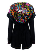 Chamarra tipo abrigo. La Lola es mucho más que una simple prenda de abrigo. Con su colorido estampado floral y detalles bordados, esta chaqueta es elegante, versátil y única, destacando en cualquier espacio.