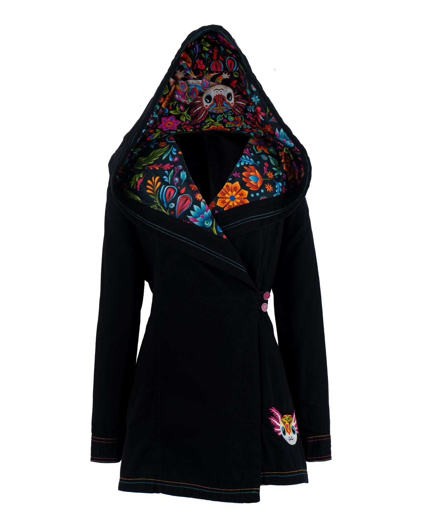 Gabardina para mujer modelo LOLA con cierre cruzado y gorro sublimado - A-LOTITO