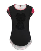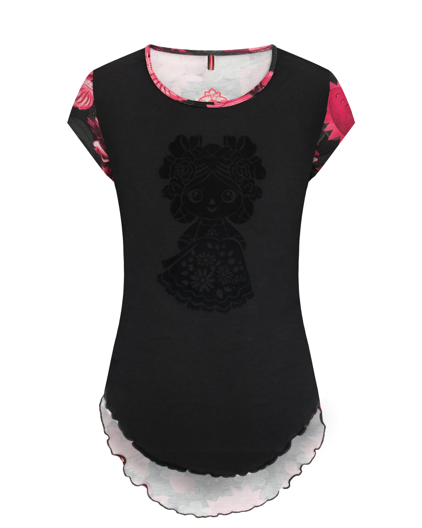 Playera estampada con aplicación de flock para mujer - Modelo PETRA ROSAS