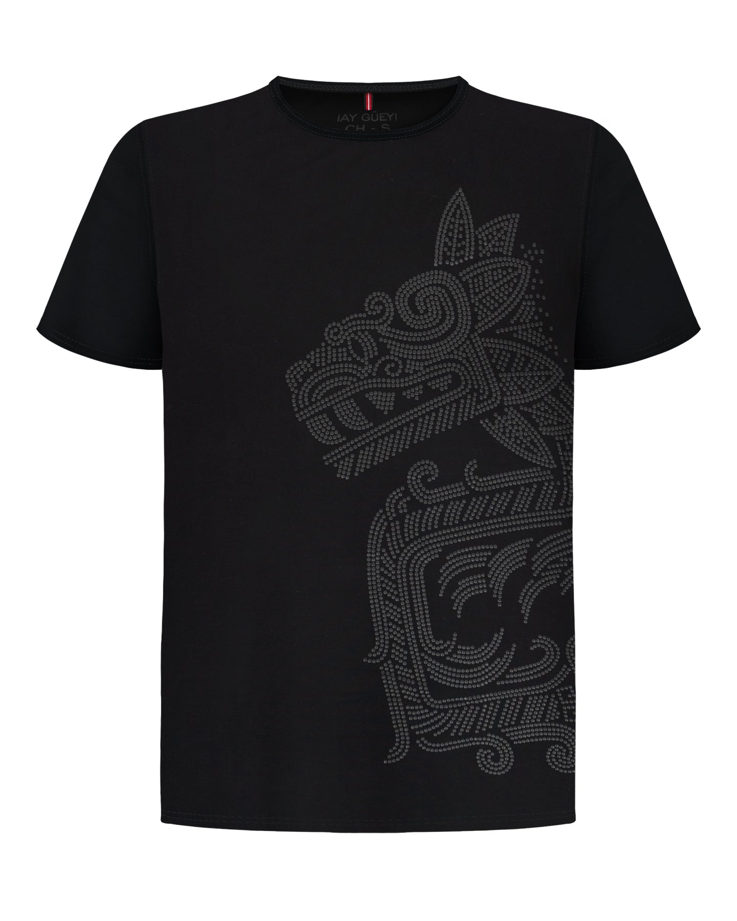 Playera estampada con aplicación de estoperol oscuro para hombre - Modelo ZUNZU Plano