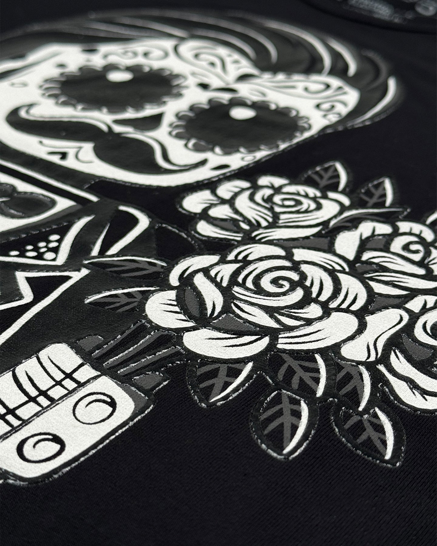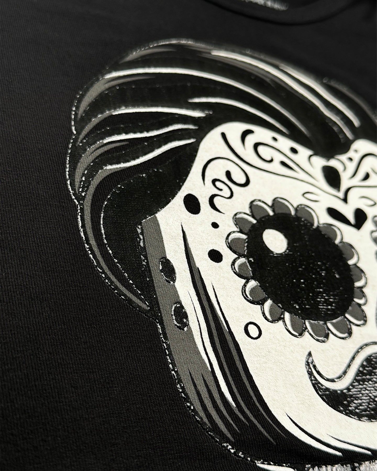Celebramos la vida y honramos nuestra herencia. Viste la elegancia de la tradición mexicana con un toque moderno y alegre. Nuestras prendas, inspiradas en el icónico Catrín de Día de Muertos, simbolizan la unión familiar y la celebración eterna.