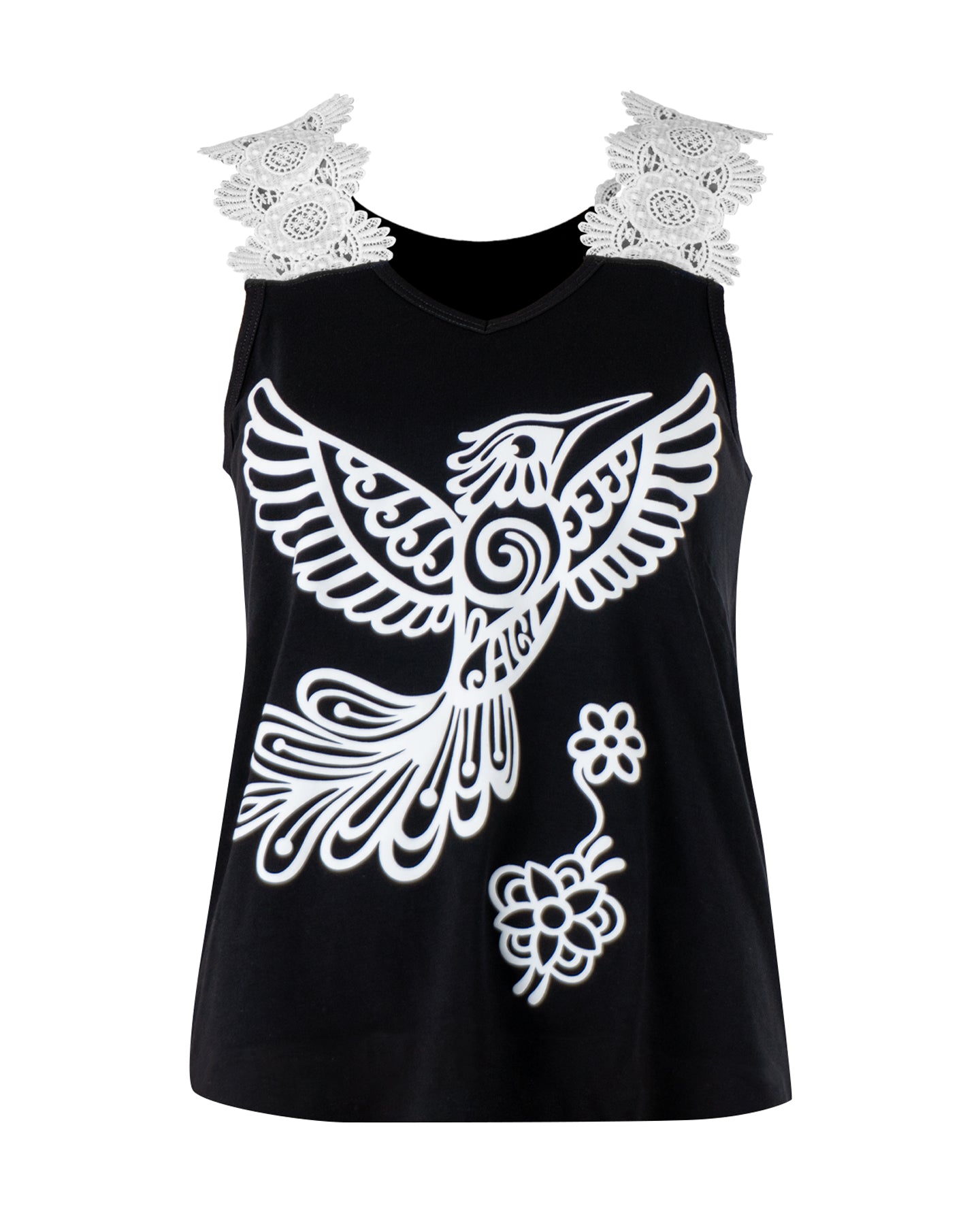 Camiseta sin mangas con estampado en flock y tirantes con encaje - Modelo TIRANTITOS