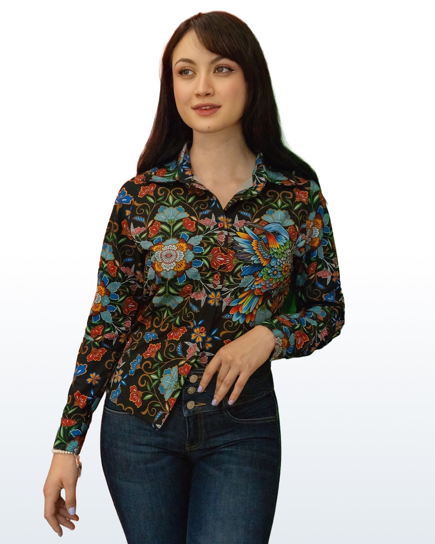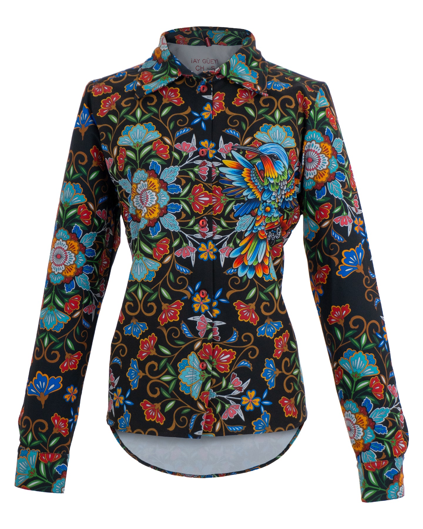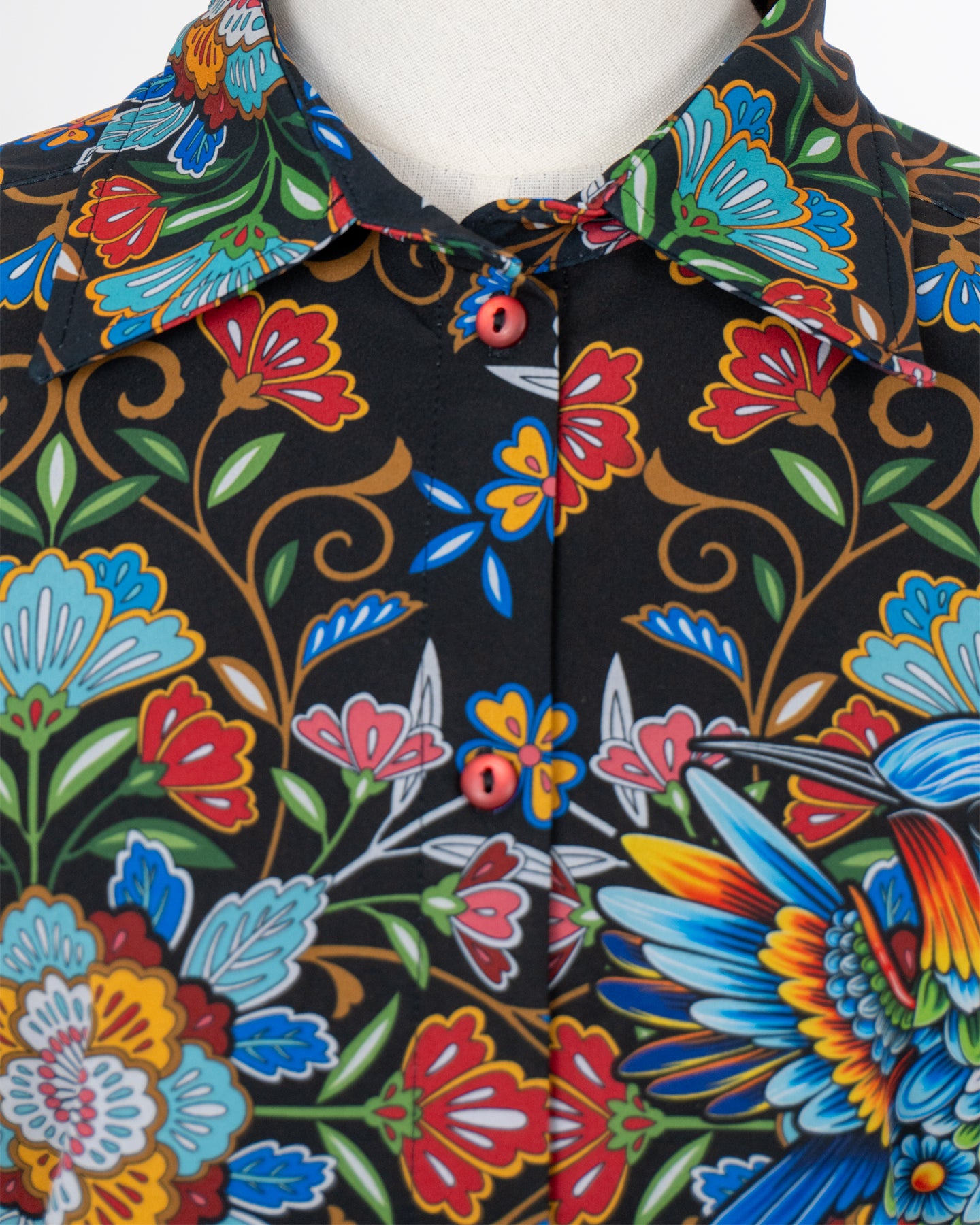 Camisa con botones sublimada para mujer - Modelo CAMISA HUI
