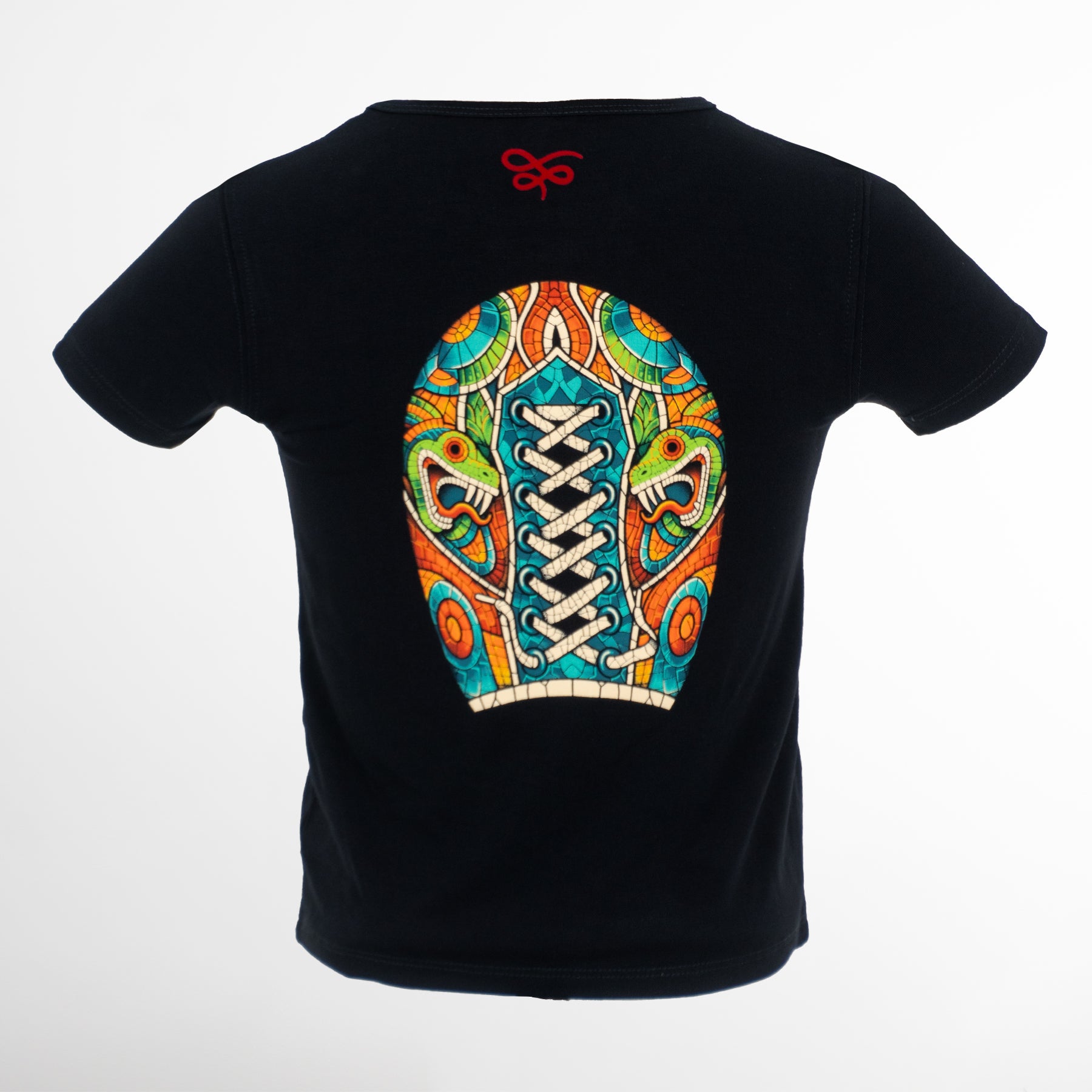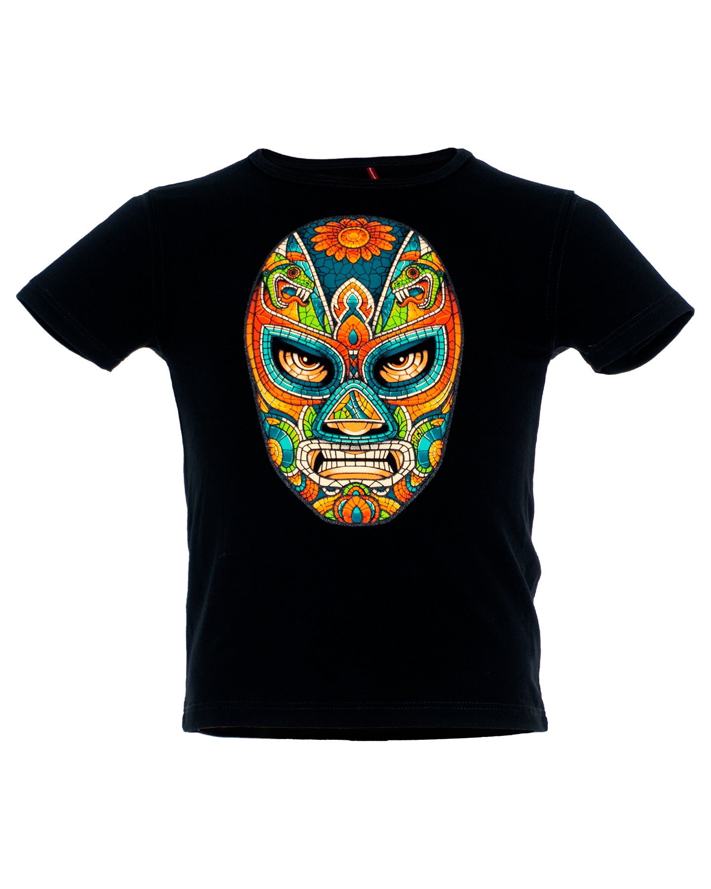 Lleva contigo la esencia de la lucha libre y el arte mexicano. Esta playera presenta un diseño único de máscara de luchador en estilo mosaico, un tributo a la rica tradición de la lucha libre y a la creatividad de nuestros artistas. Cada pieza del mosaico representa un valor: honor, valentía, pasión. ¡Viste con orgullo tu identidad!