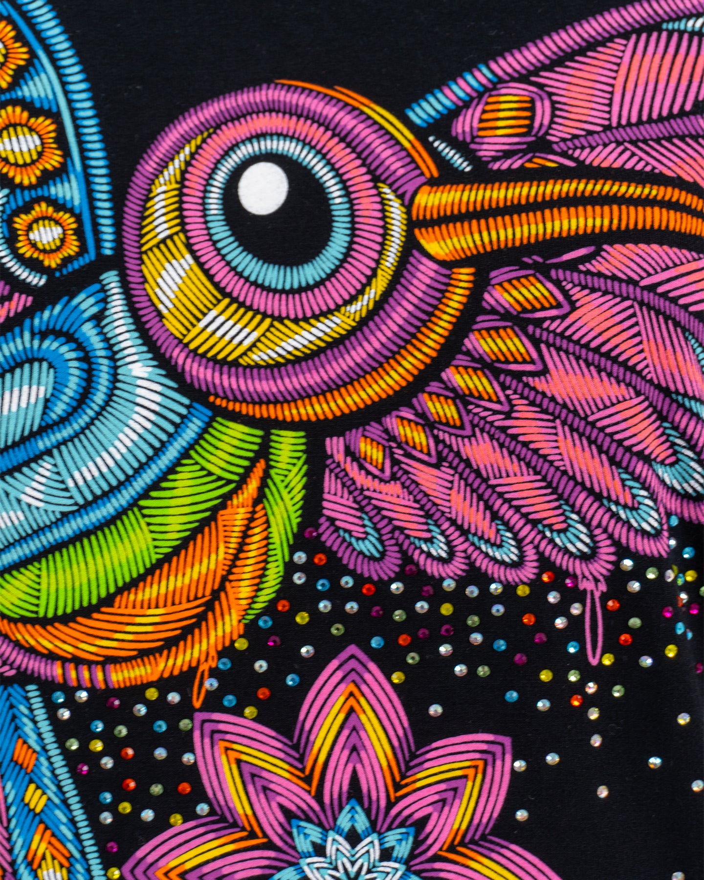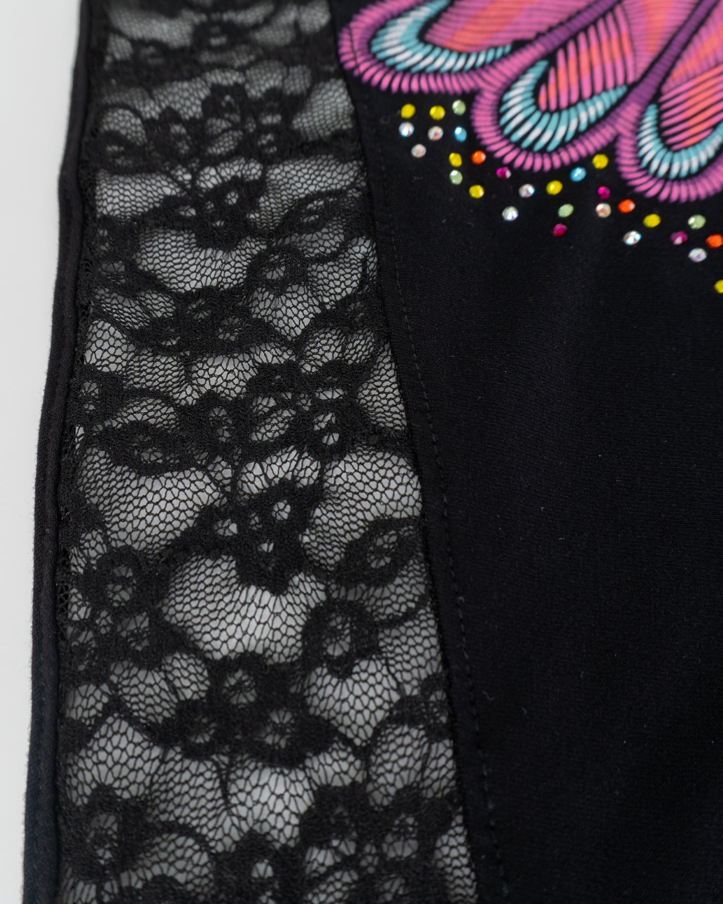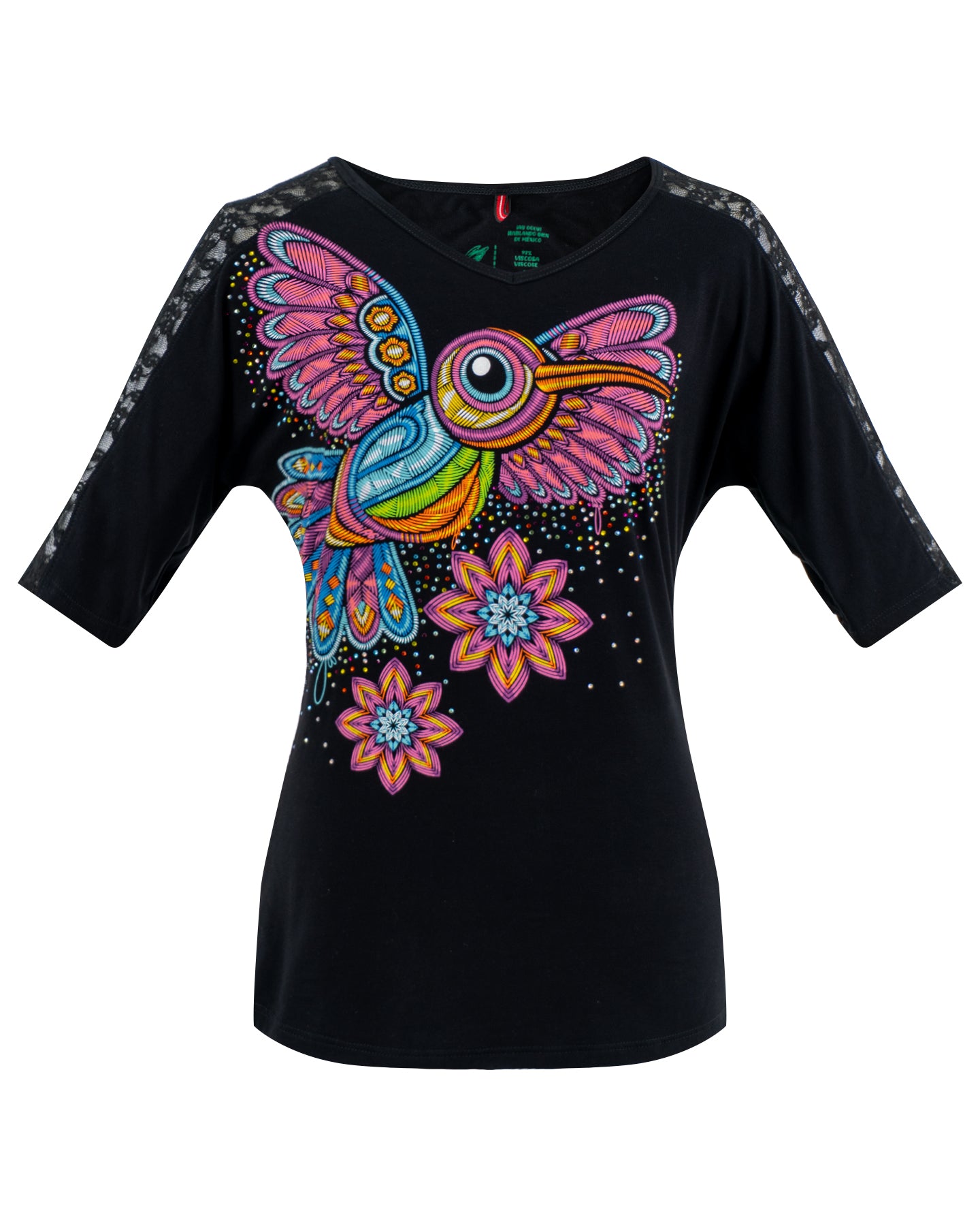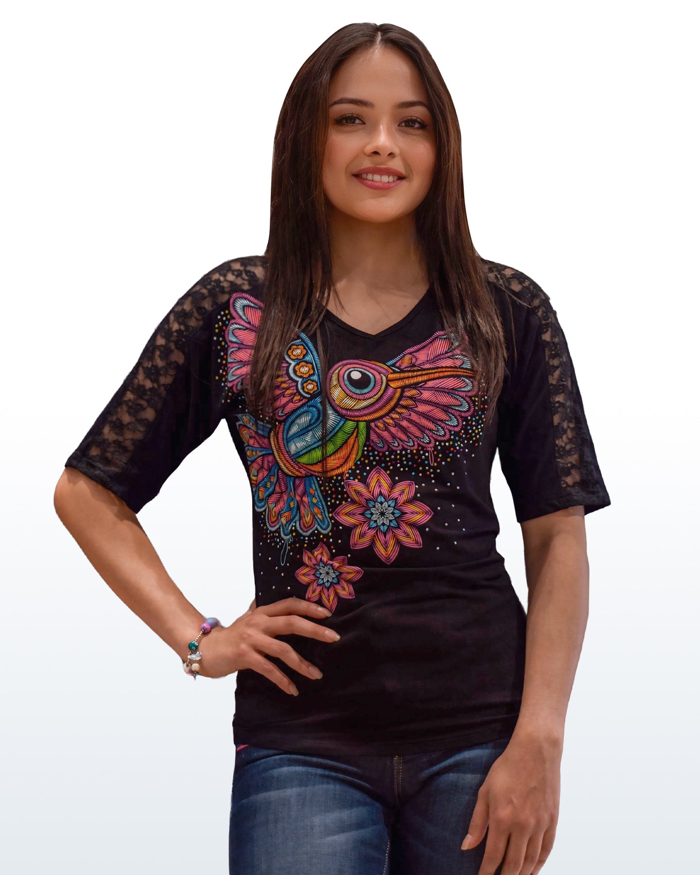 Blusón estampado con aplicación de pedrería y manga 3/4 con encaje - Modelo PEPITA