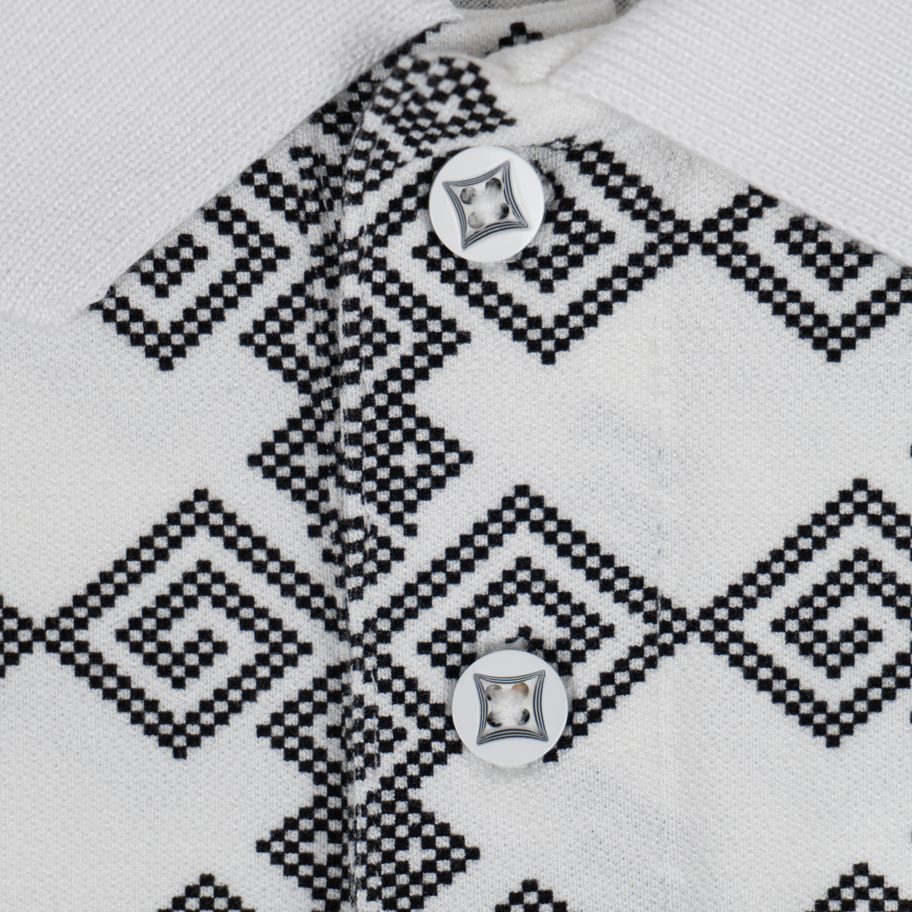Nuevo corte de caballero tipo polo, adornada con un patrón de rombos inspirados en la cultura azteca, una civilización que floreció en el sureste mexicano.