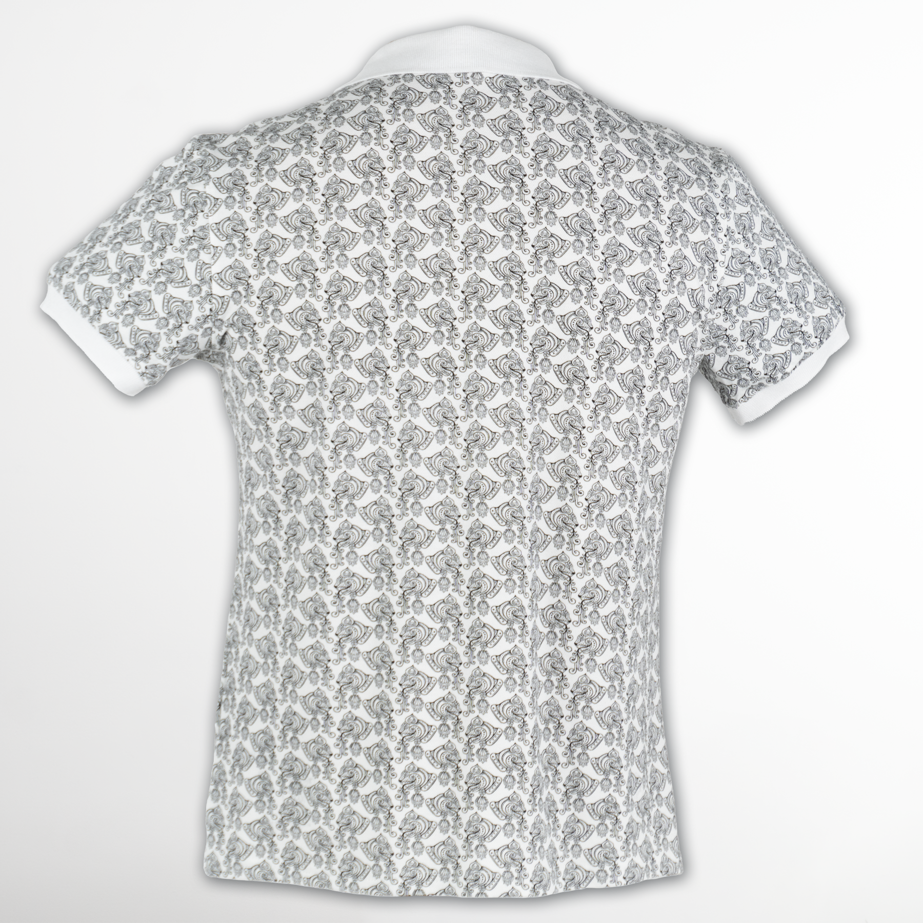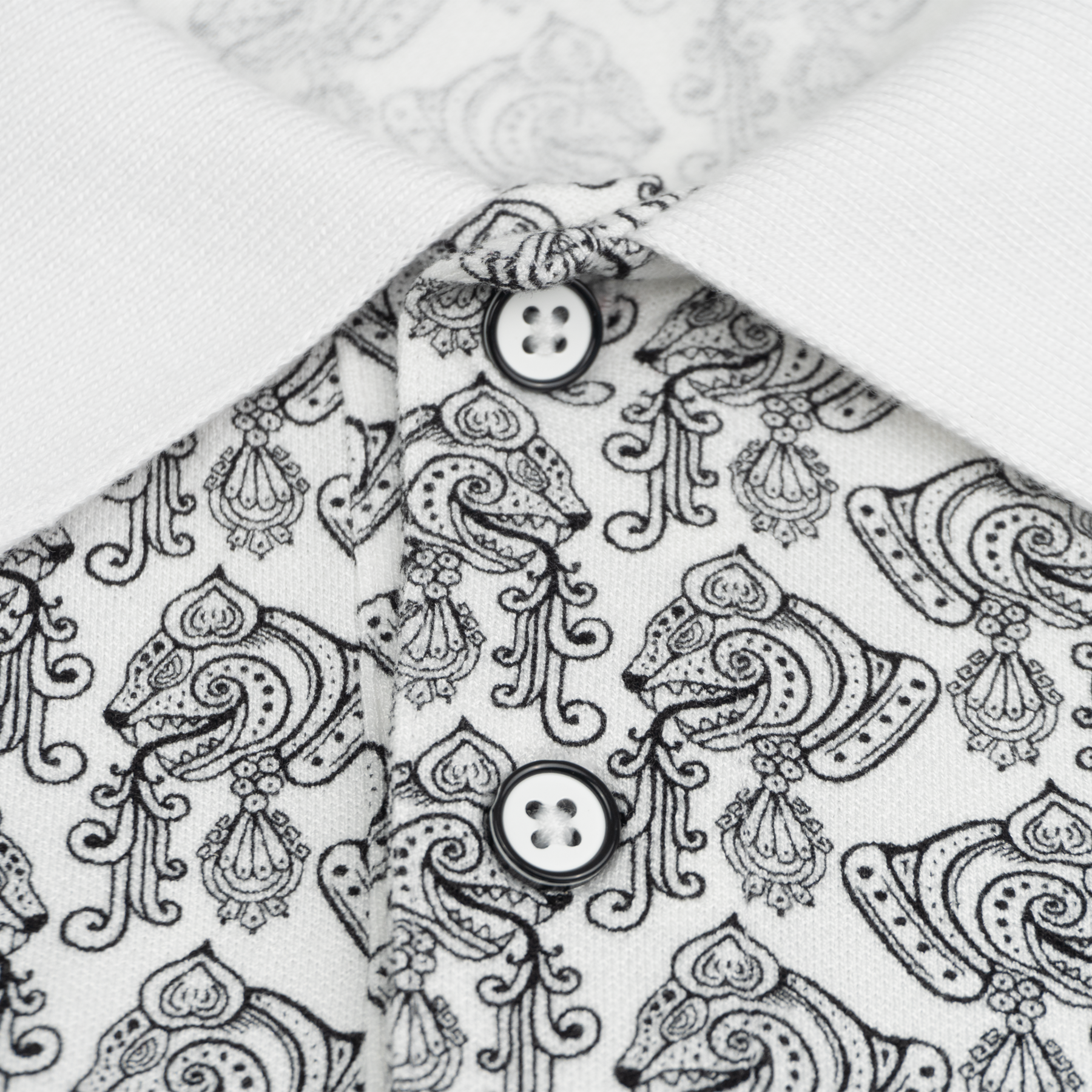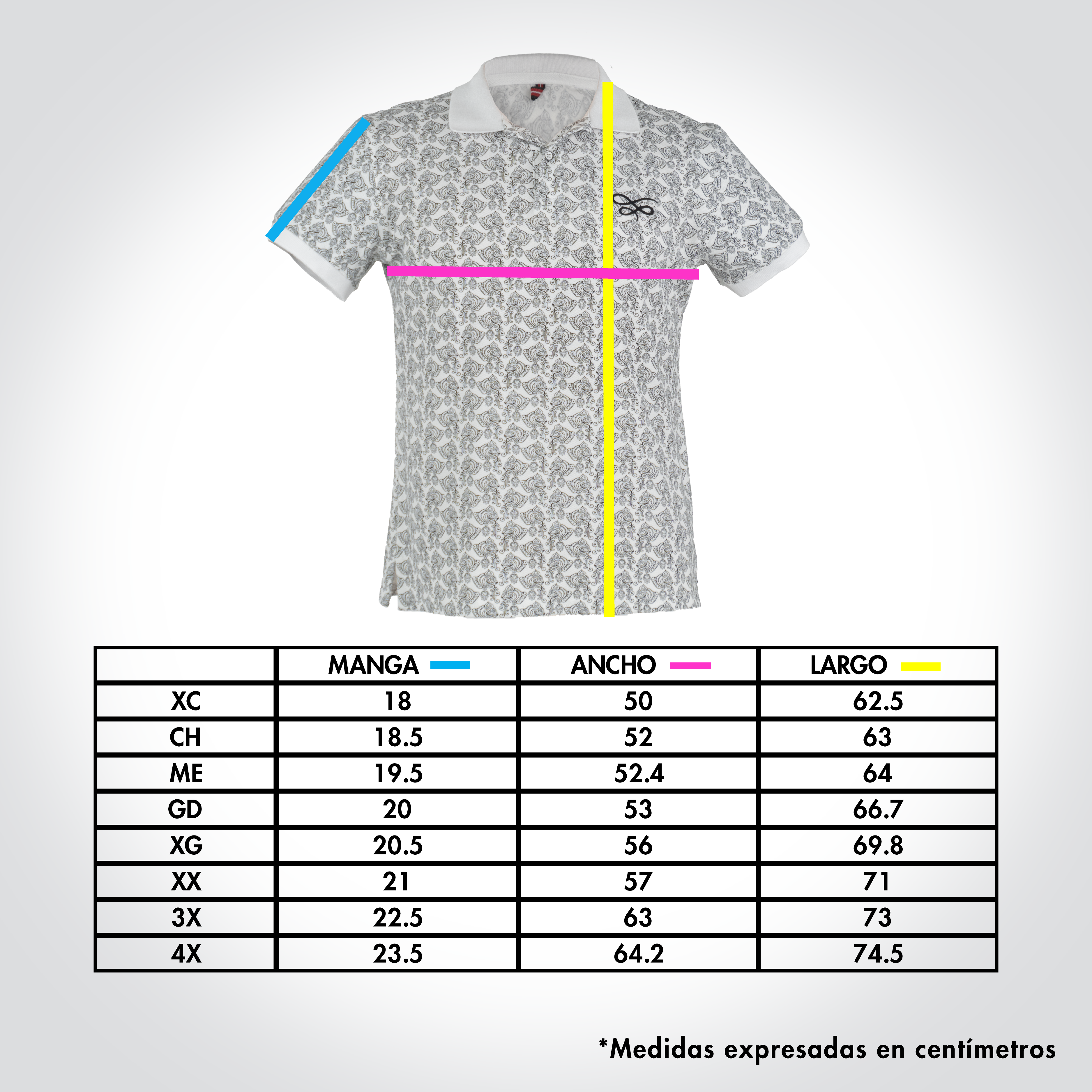 Nuevo corte de caballero tipo polo, adornada con un patrón que representa al Balam/Jaguar, animal majestuoso venerado por los antiguos pueblos mayas.