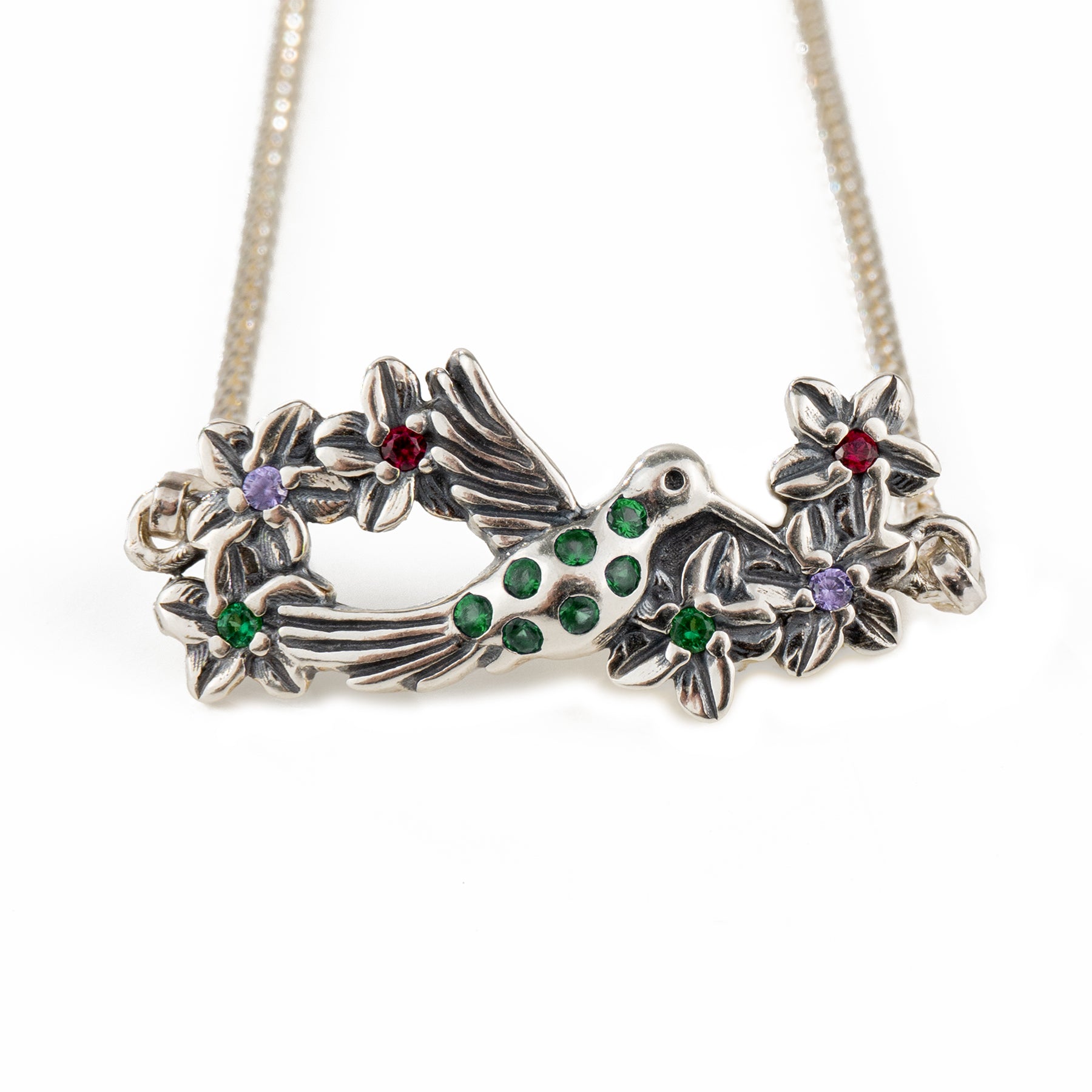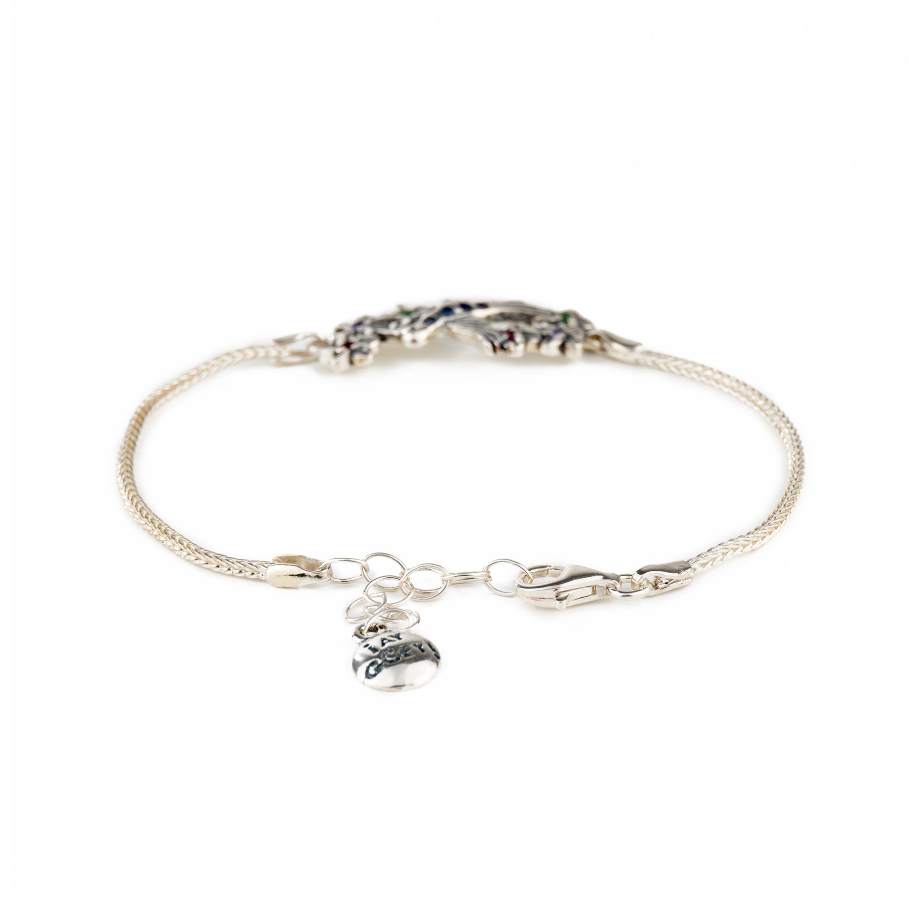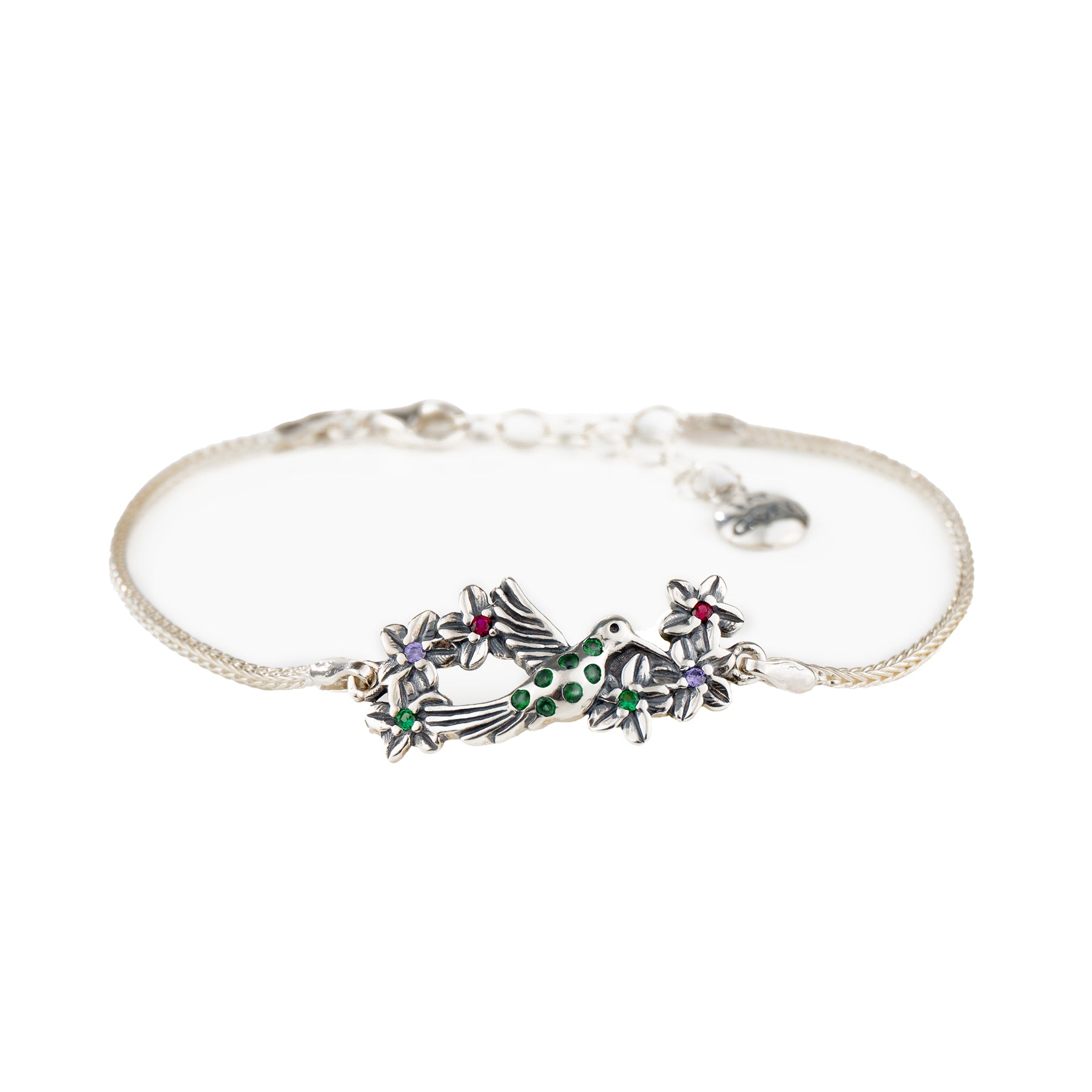 Brazalete de plata con dije y circonias Verdes - Colección COLIBRÍ FLORES