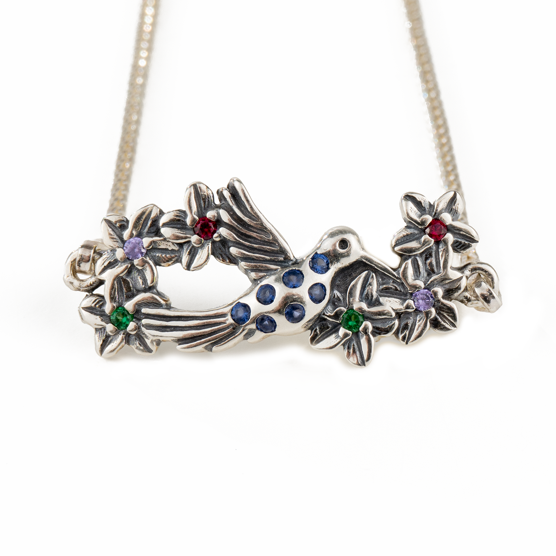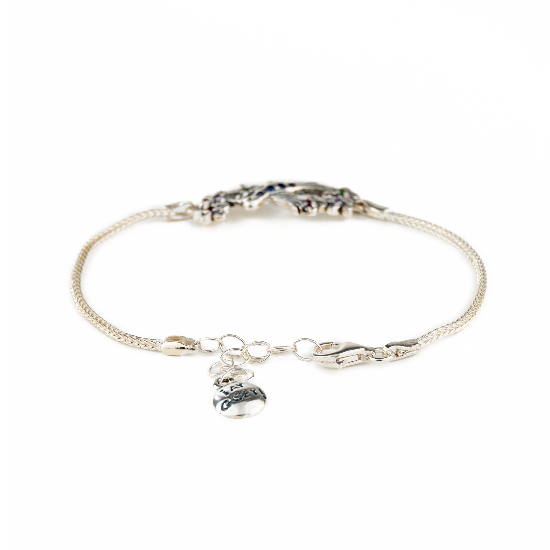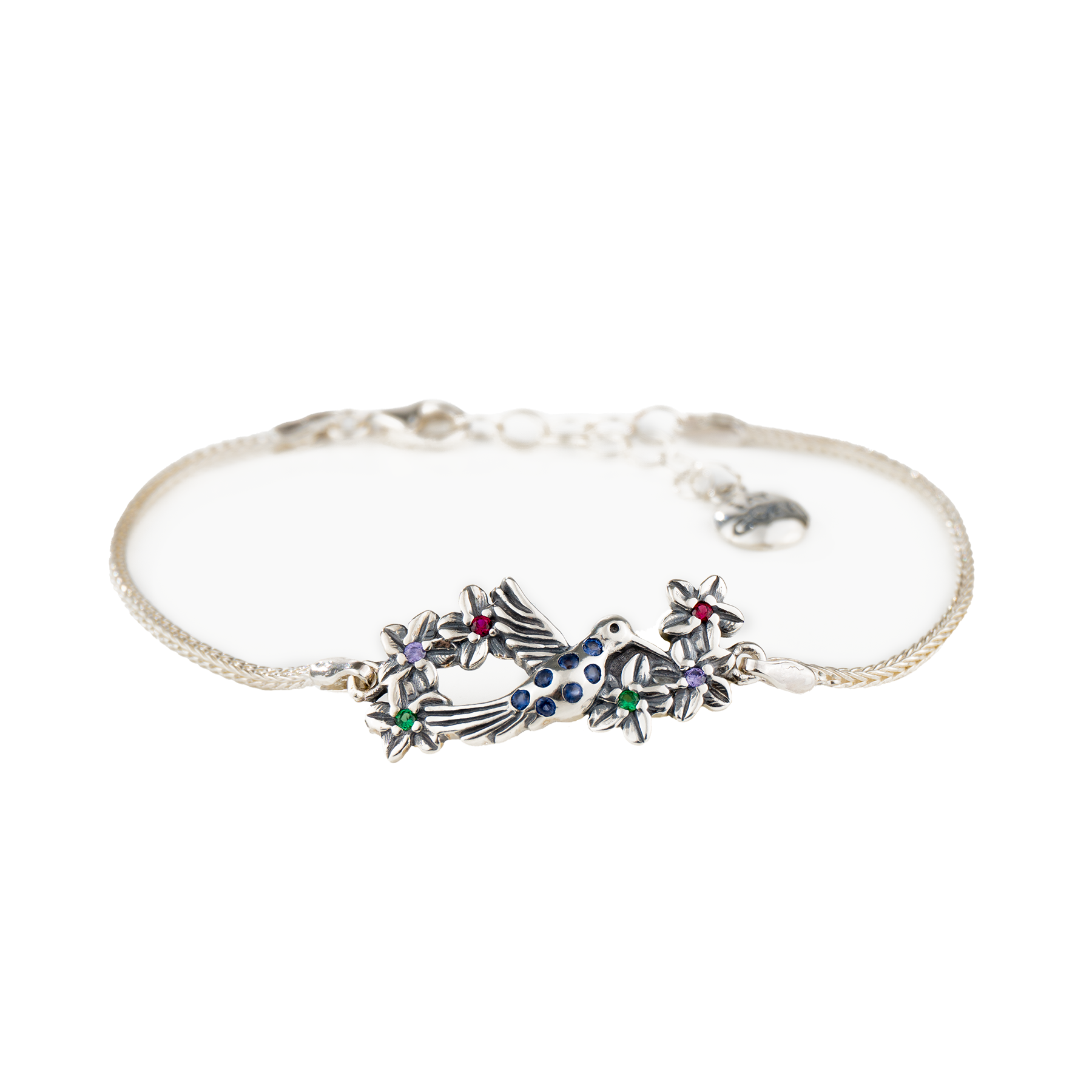 Brazalete de plata con dije y circonias Azules - Colección COLIBRÍ FLORES