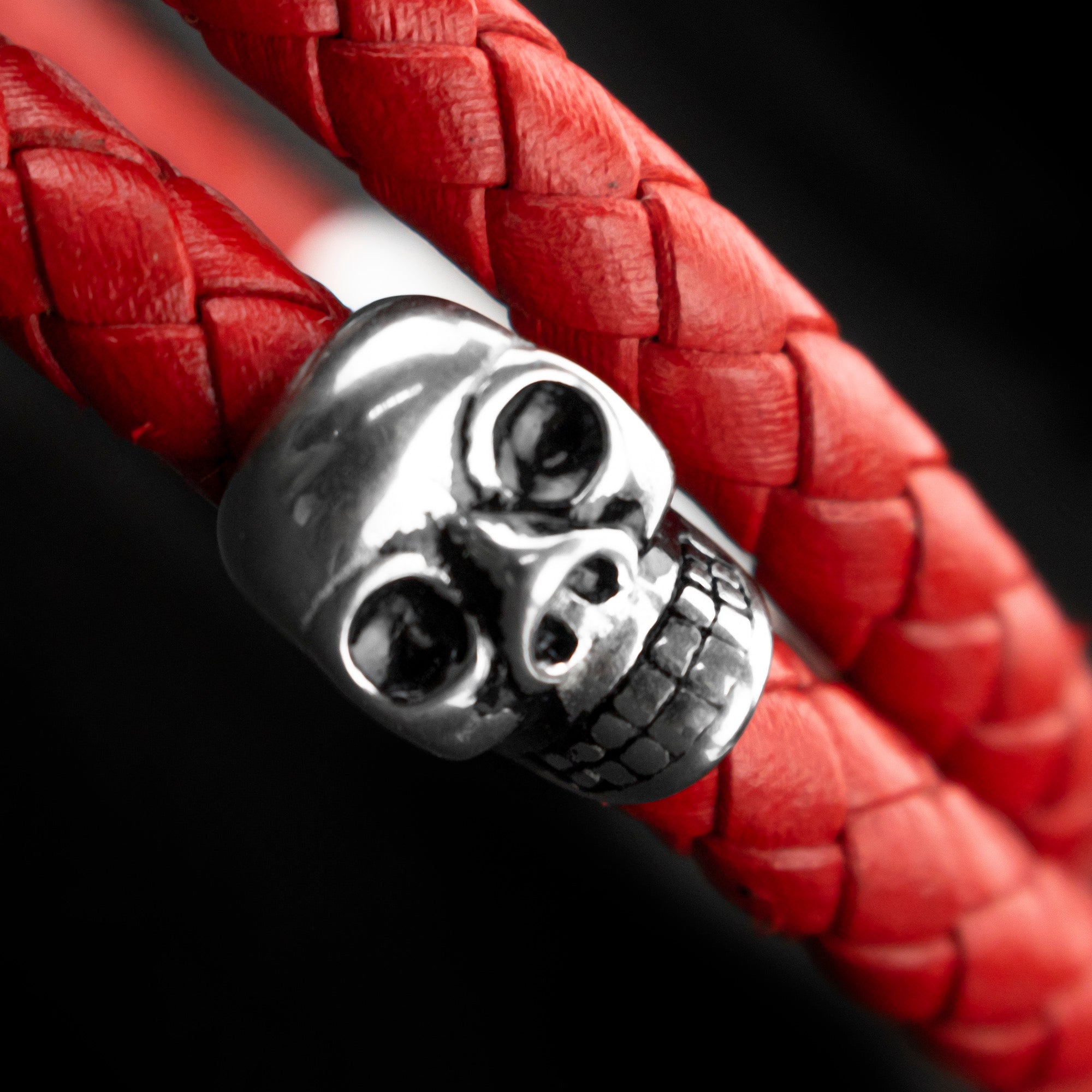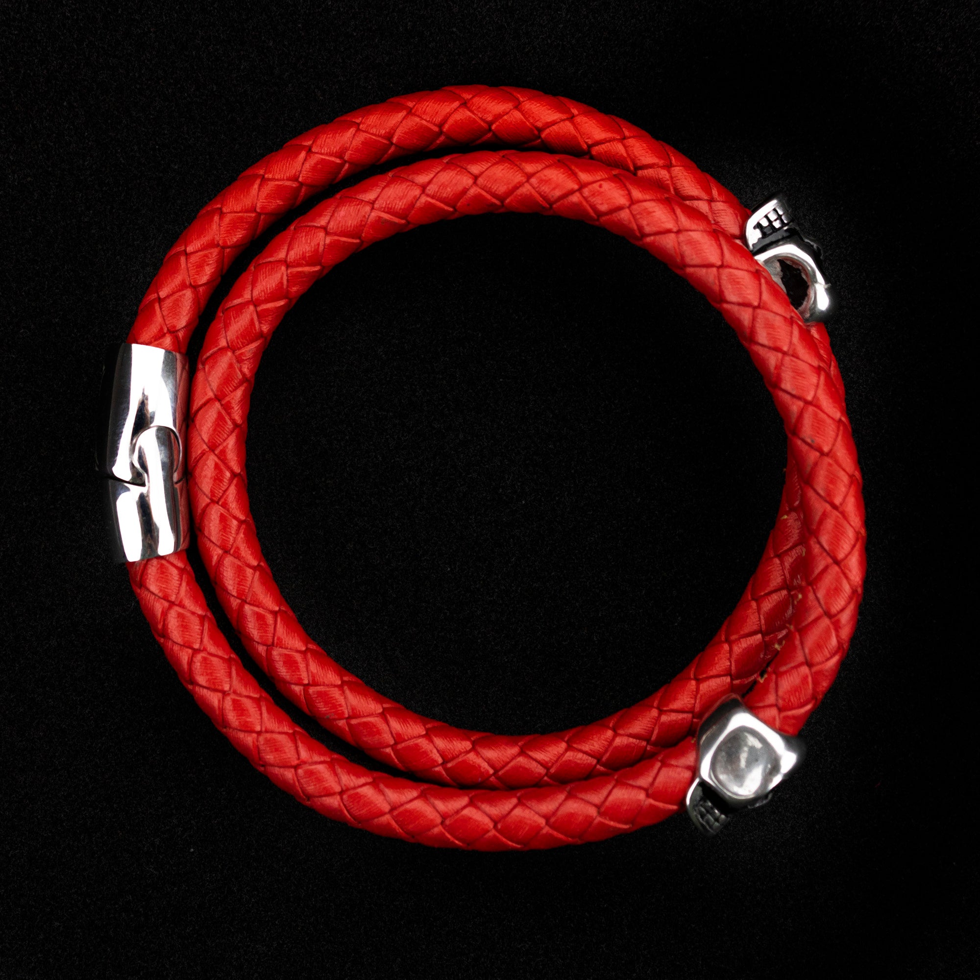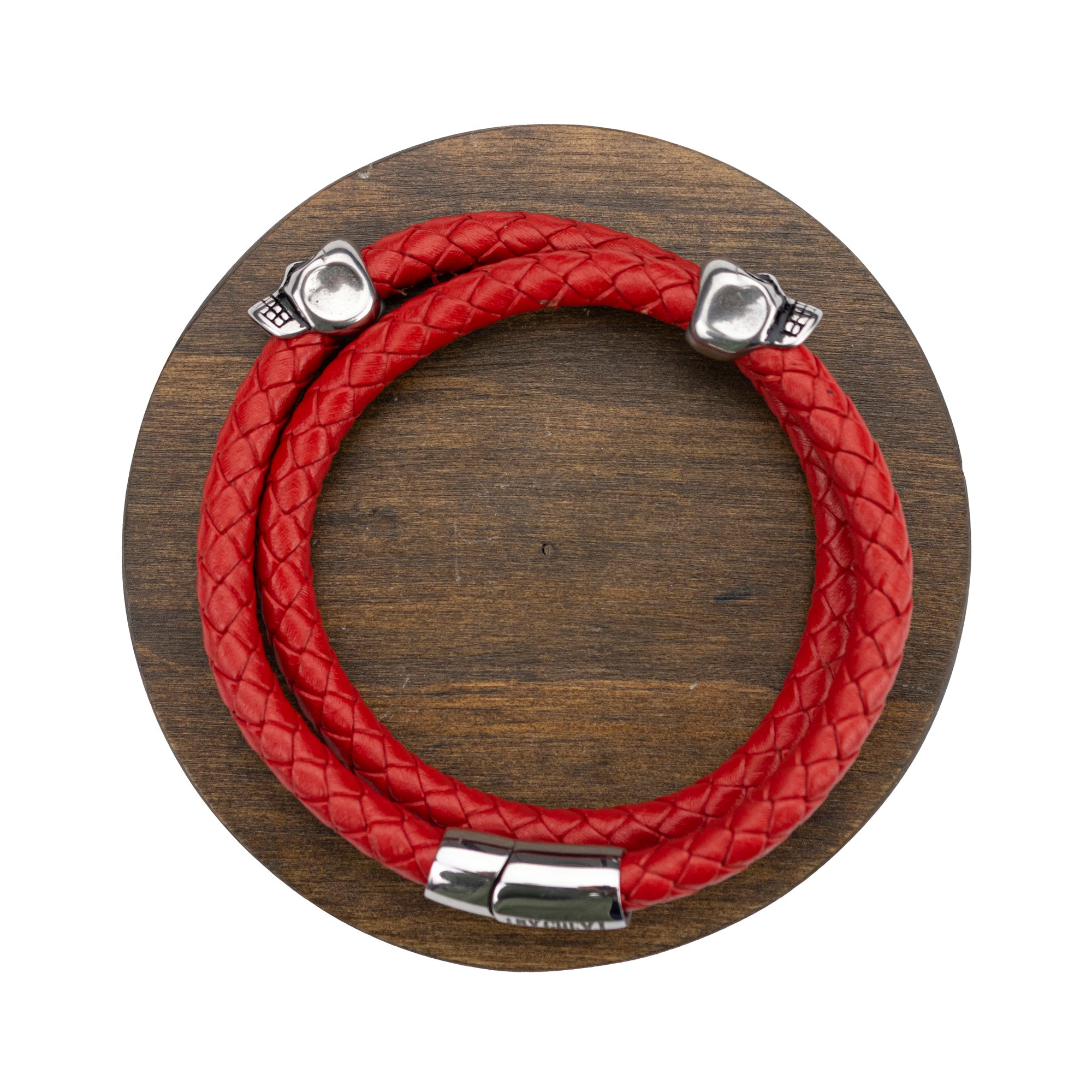Brazalete Piel Trenzada 2 Calaveras - Rojo