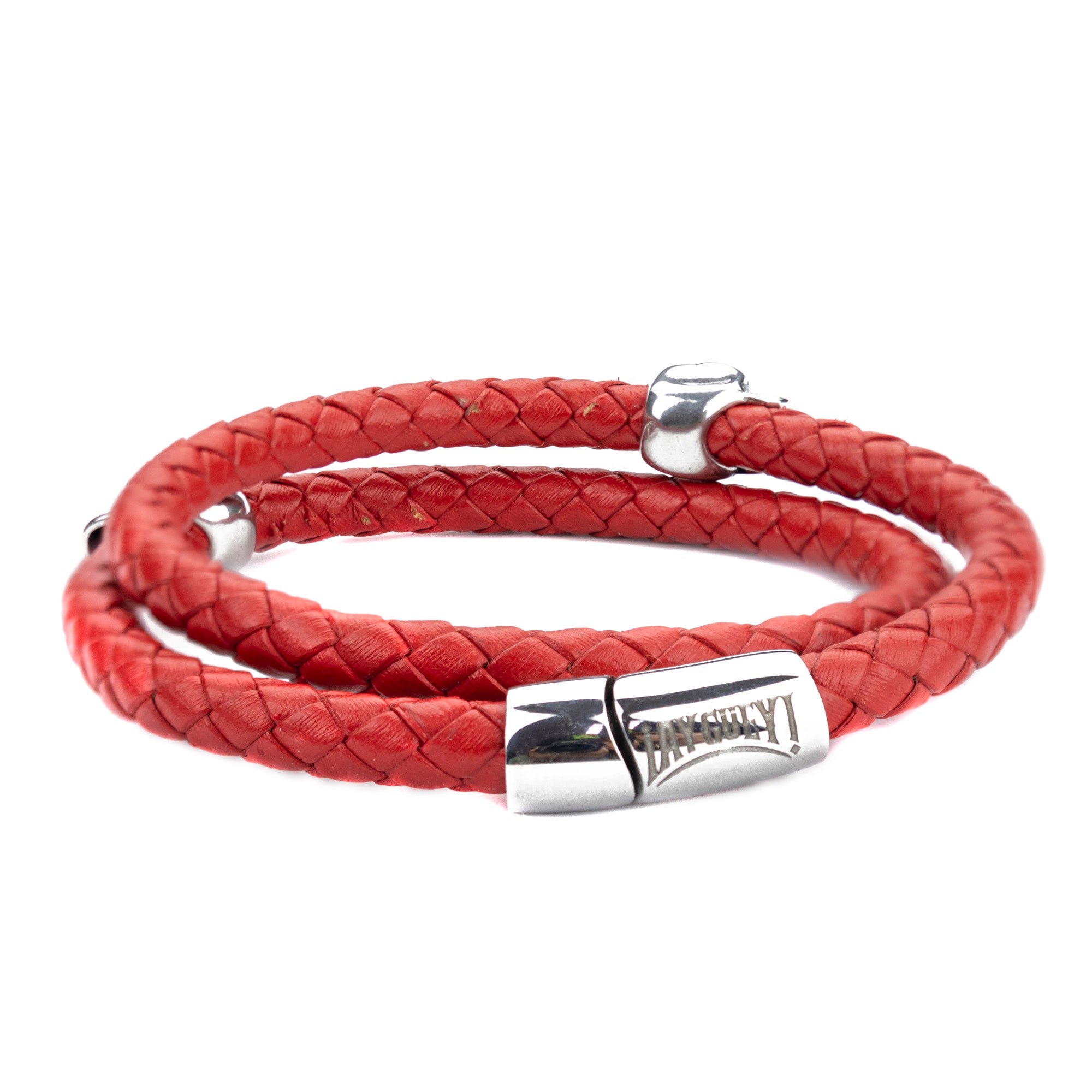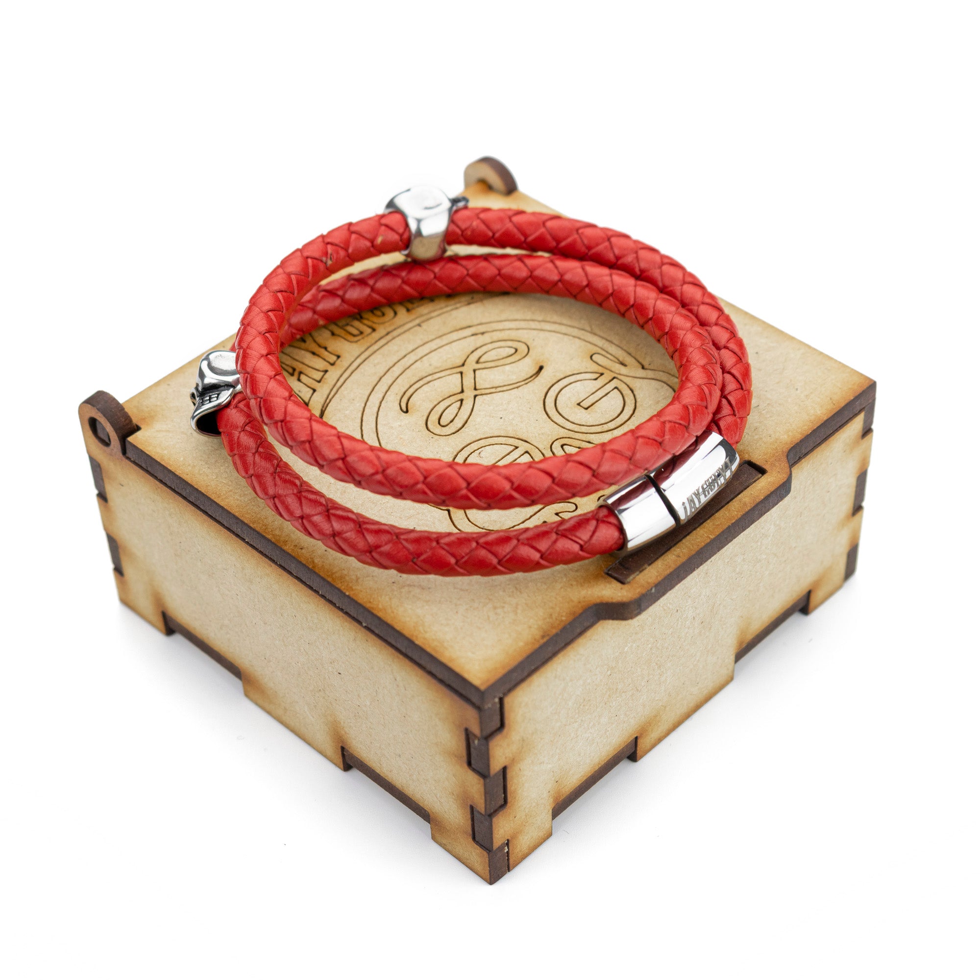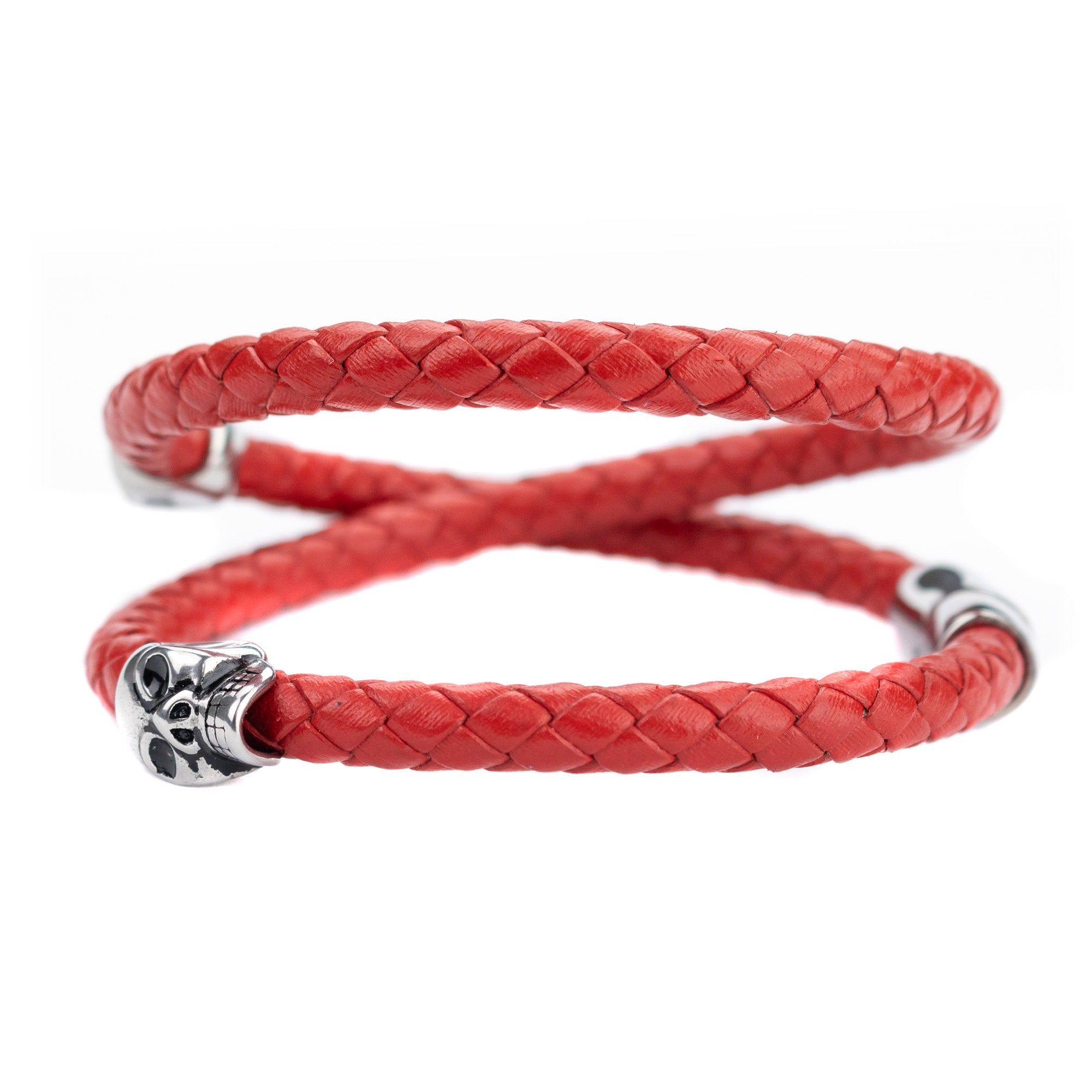 Brazalete Piel Trenzada 2 Calaveras - Rojo