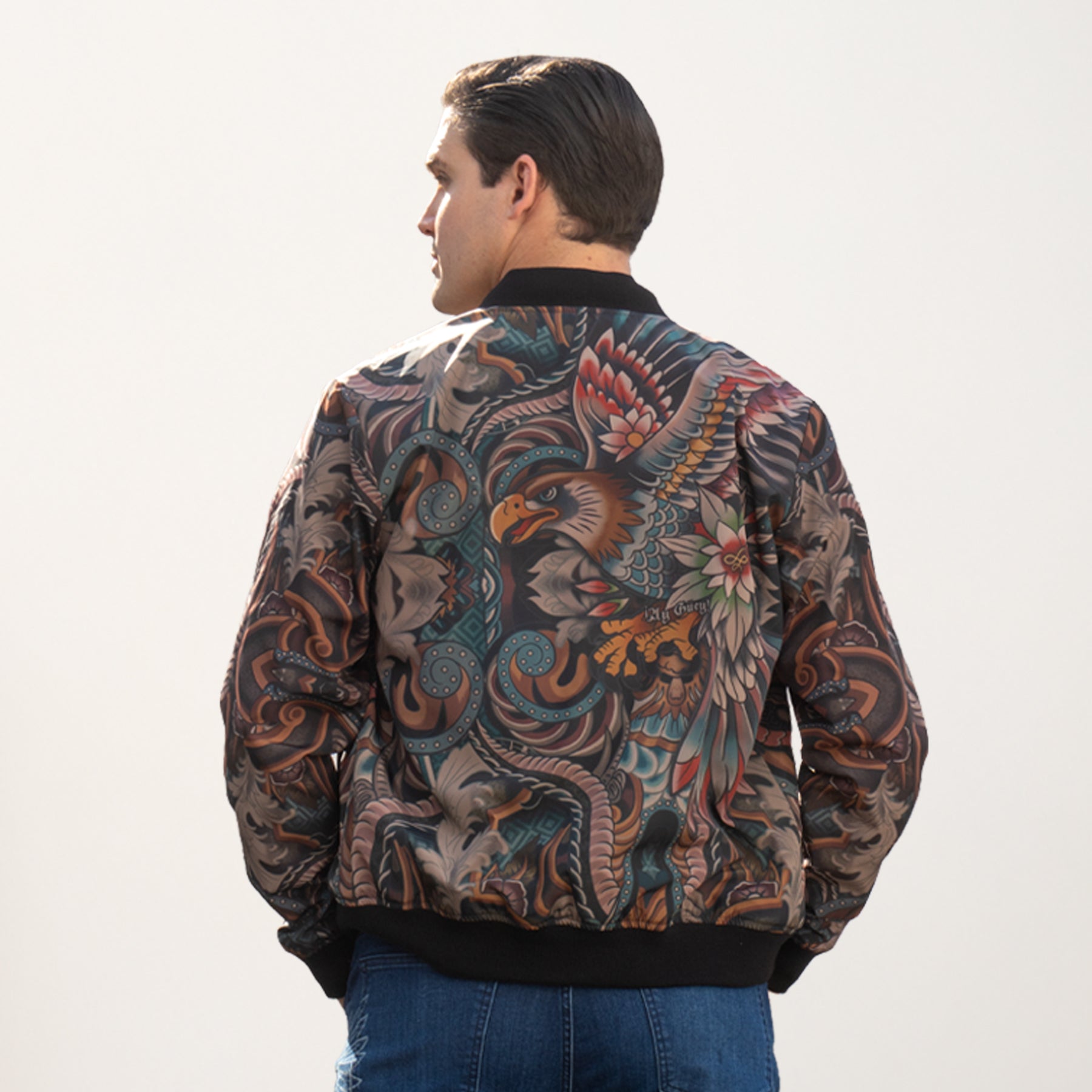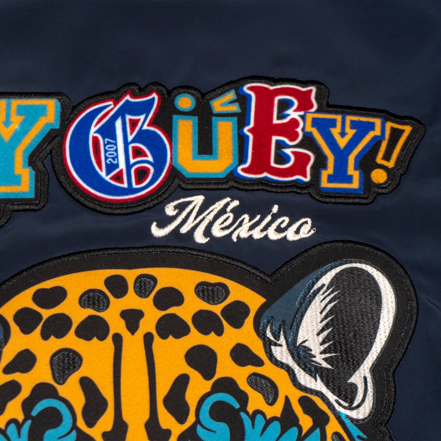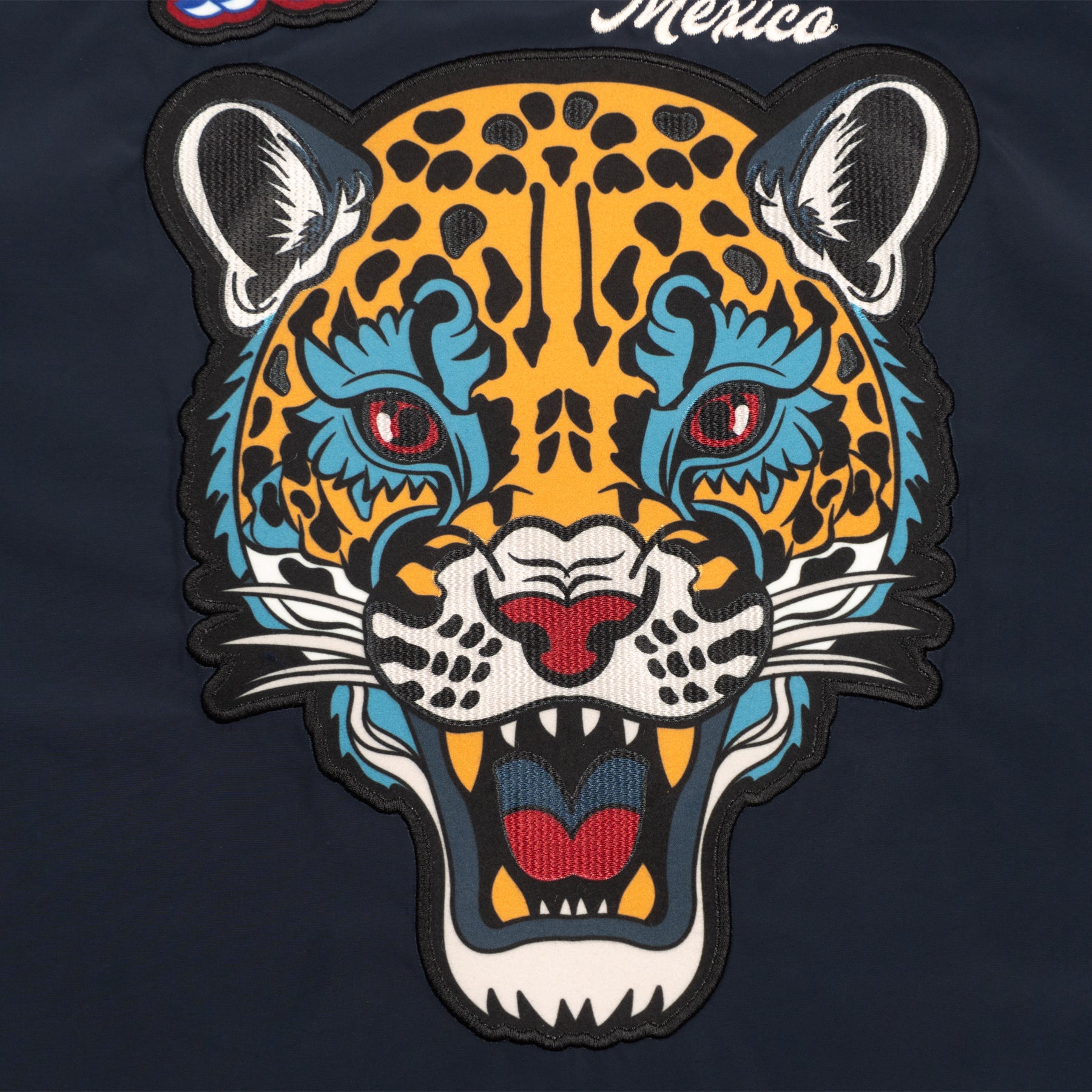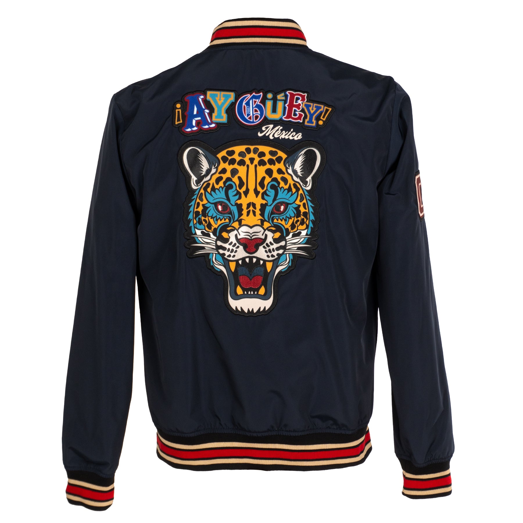 Diseñada para quienes buscan expresarse sin límites, esta pieza fusiona dos mundos en un solo diseño. Inspirado en los tatuajes antiguos, un lado de la chamarra lleva gráficos audaces y detallados que rinden homenaje a la tradición del tatuaje clásico fusionado con elementos de la historia de México. El otro lado de la chamarra, tiene un diseño a temporal con aplicaciones en contraste, detalles en tipografías deportivas, este lado transmite el estilo icónico de la cultura universitaria, fusionando nostalgia y modernidad.