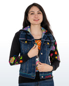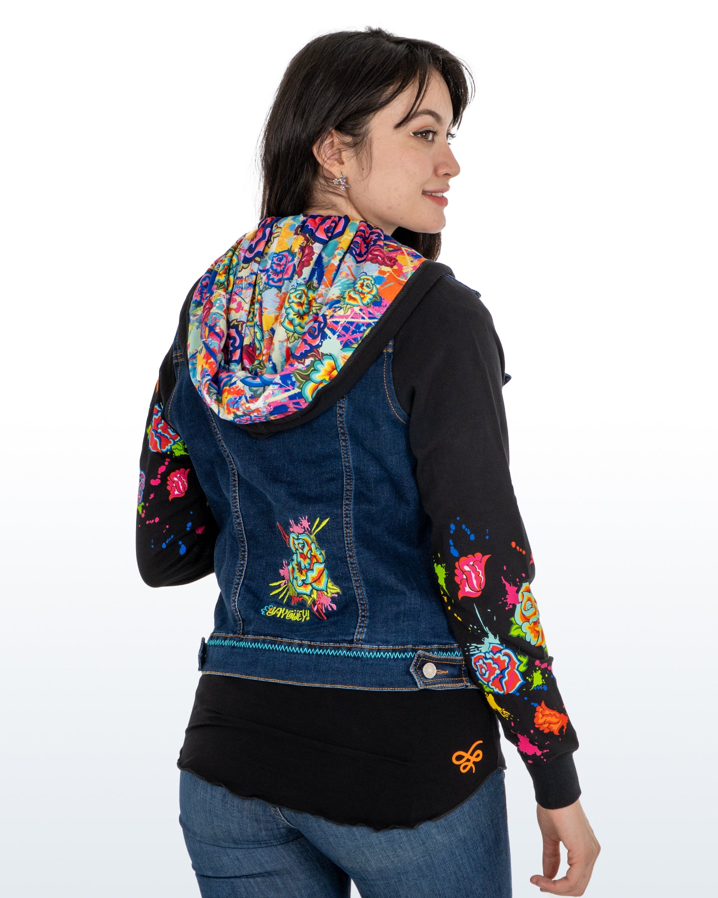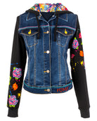 Chamarra de mezclilla con gorro y parches bordados Modelo FIU FIU - NAYARITA
