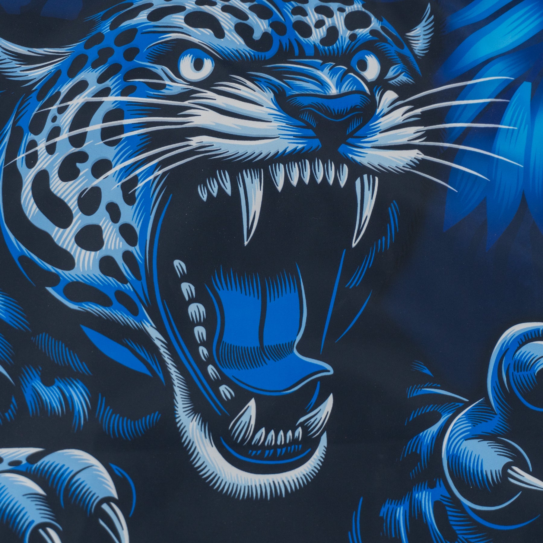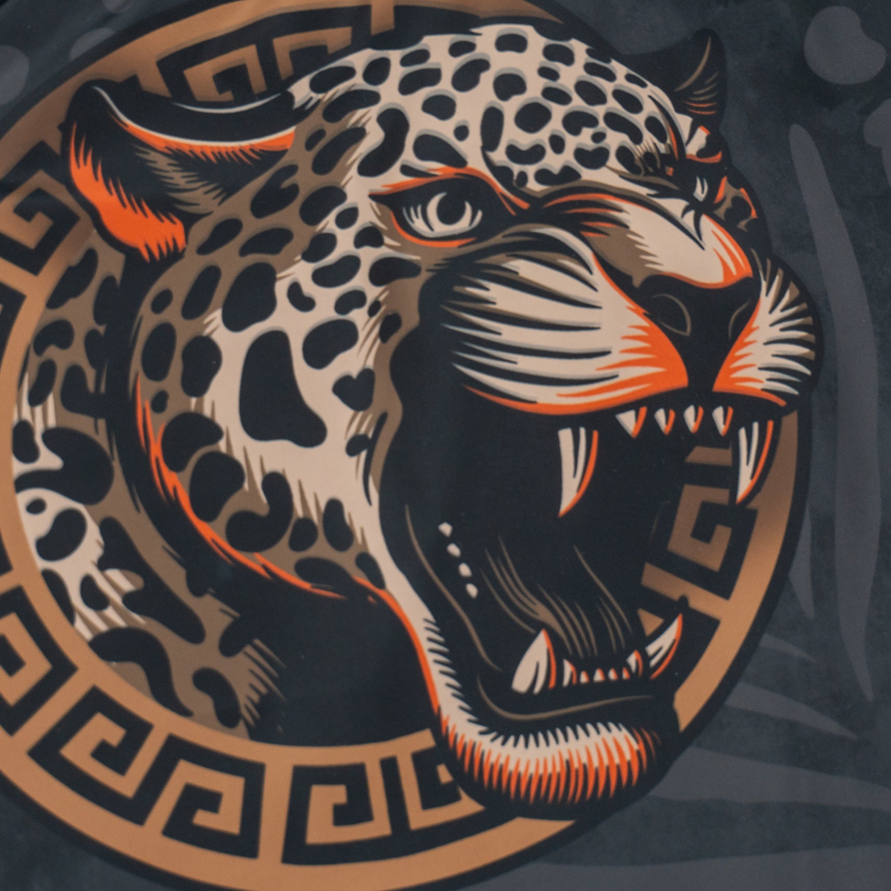 Cuenta con dos vistas, diseño sublimado inspirado en el jaguar, un lado refleja el lado salvaje bajo la luz de la luna y el lado negro presenta la majestuosidad de la selva.