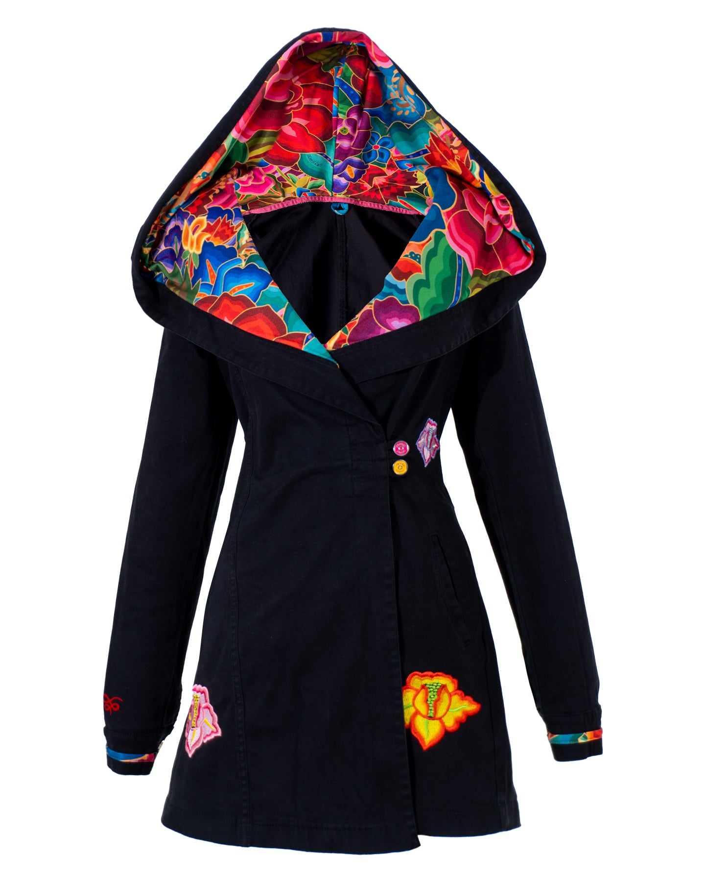 Gabardina para mujer modelo LOLA con cierre cruzado y gorro sublimado - BORDADO