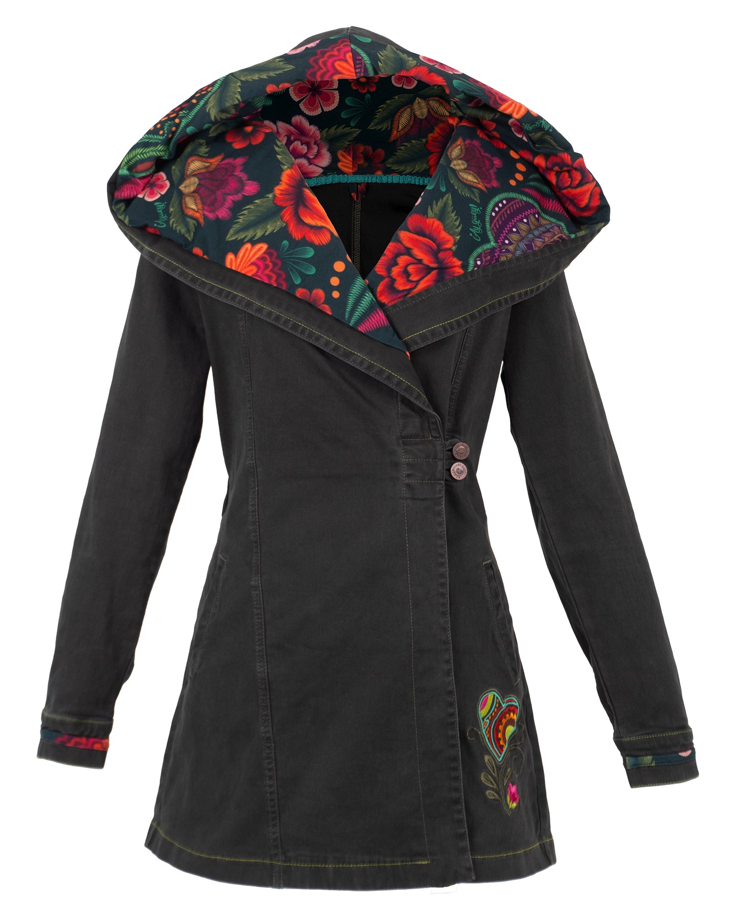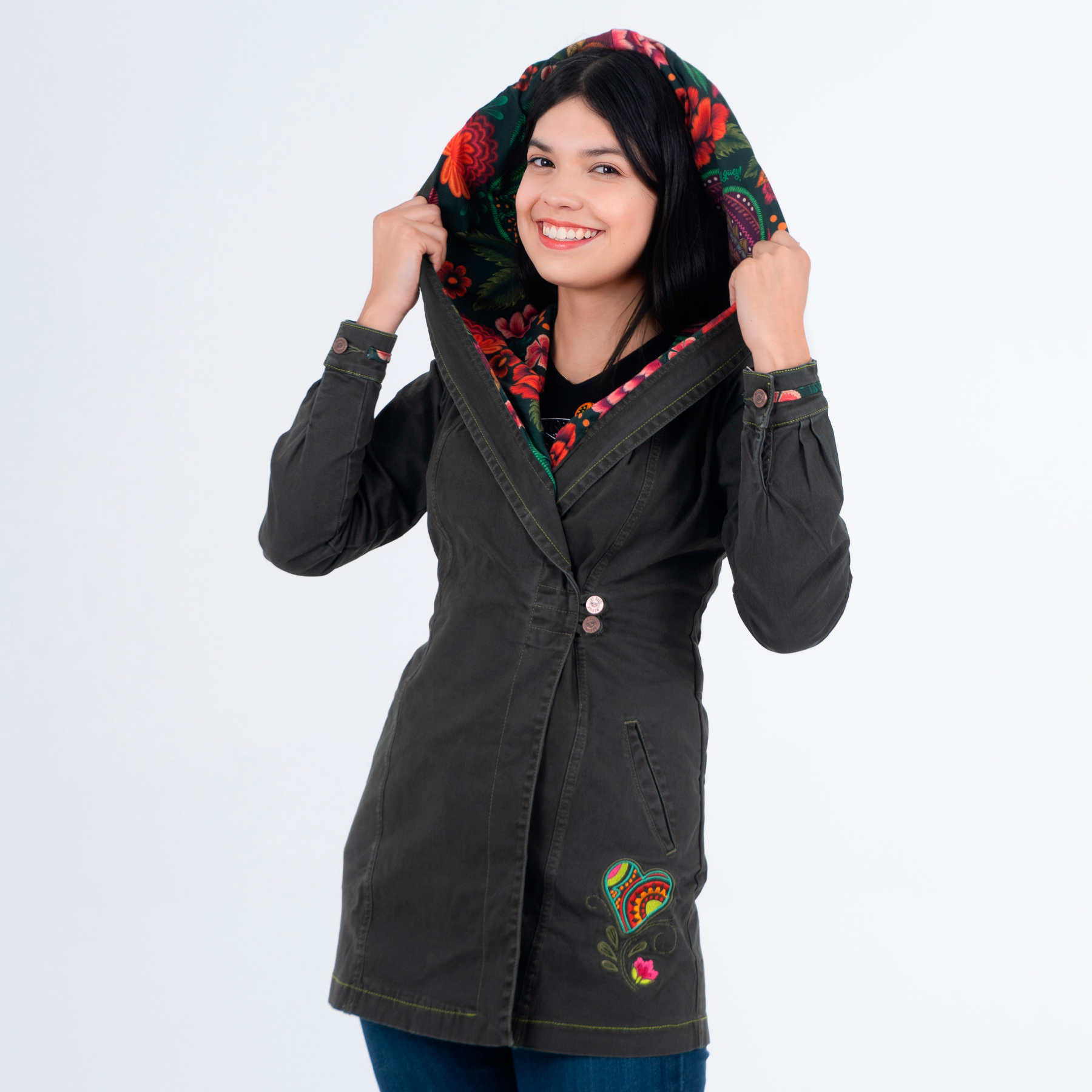 Gabardina para mujer modelo LOLA con cierre cruzado y gorro sublimado - CORAZÓN DE LUPA