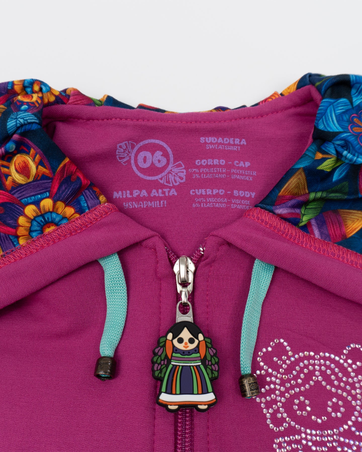 Sudadera modelo Pau Pau con gorro sublimado para niña - MILPA ALTA