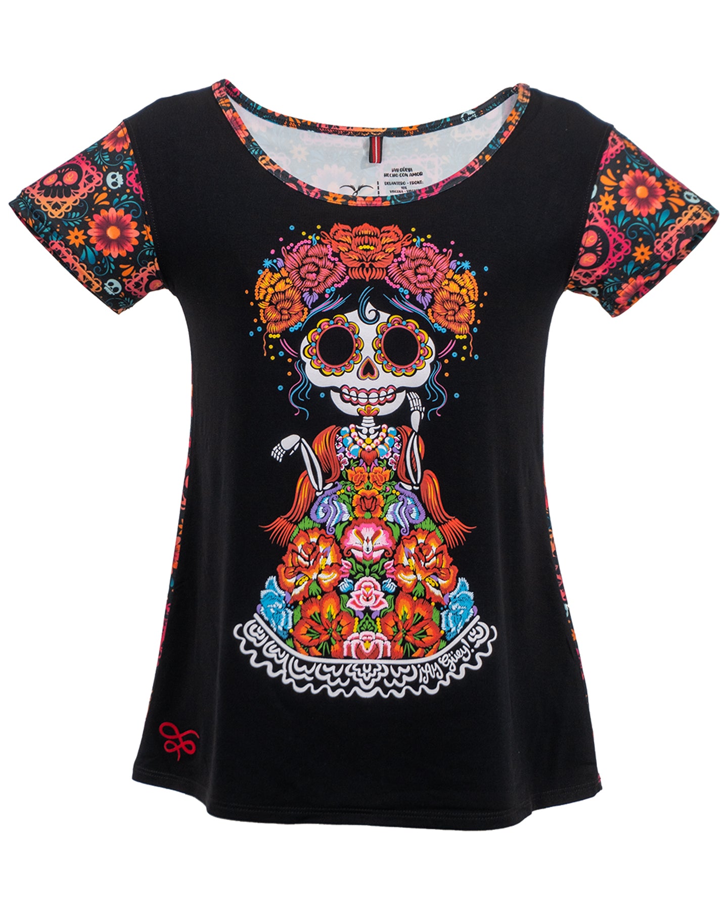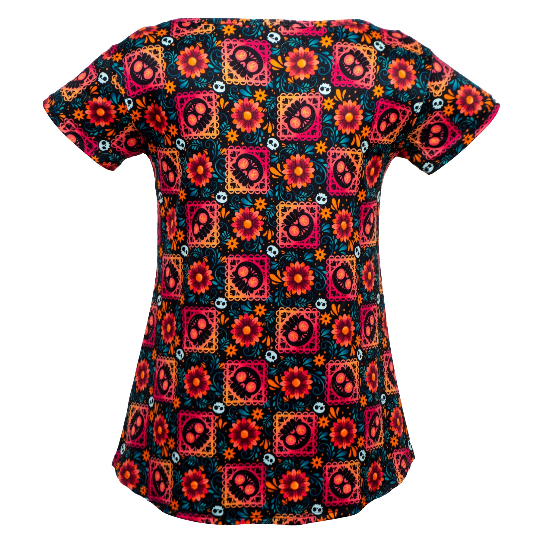 - Mangas y espaldas sublimadas con un pattern inspirado en el papel picado