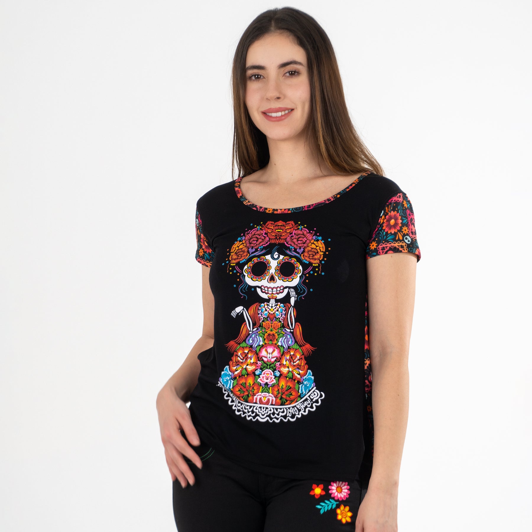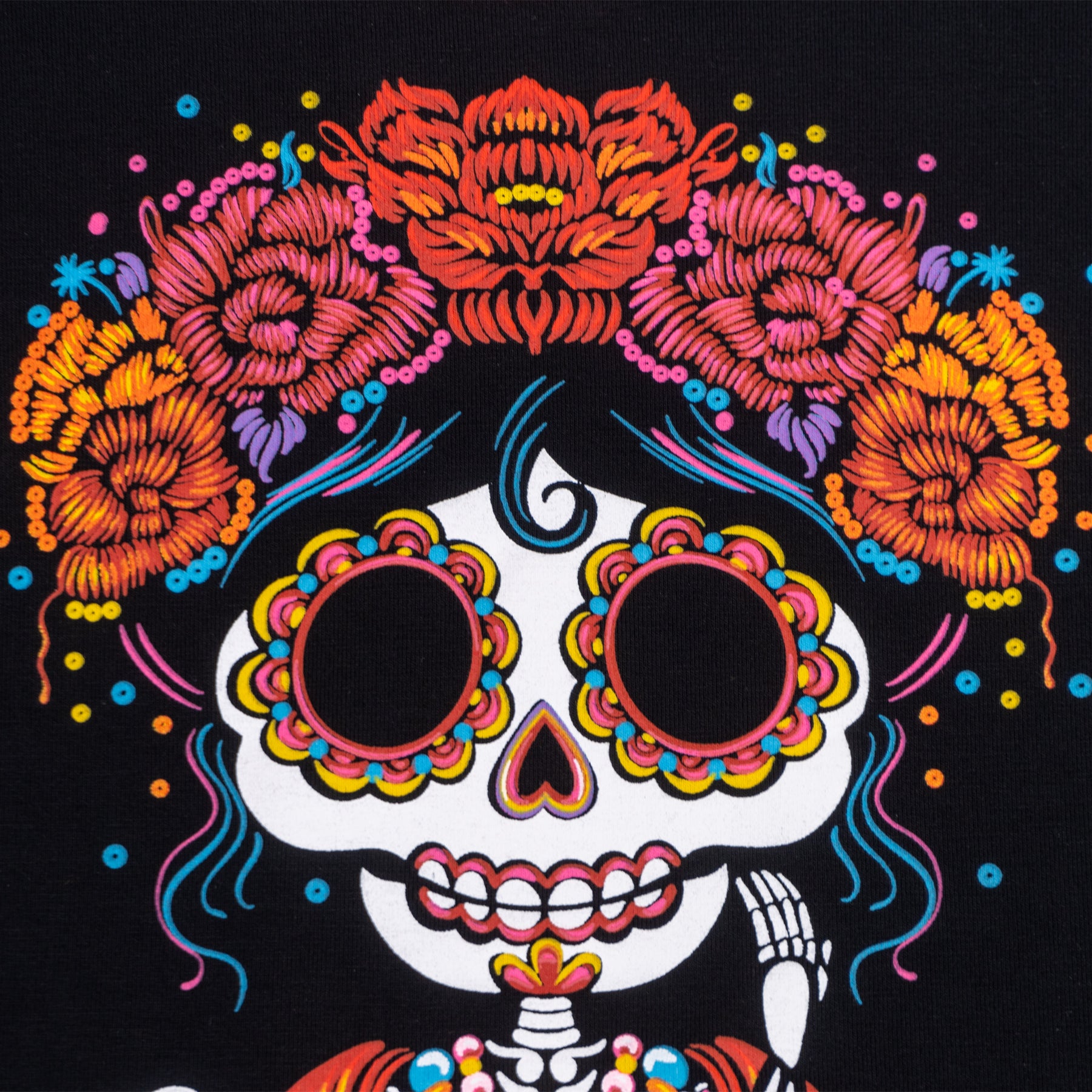 Celebra la alegría de la vida a través de la mirada eterna de una catrina.