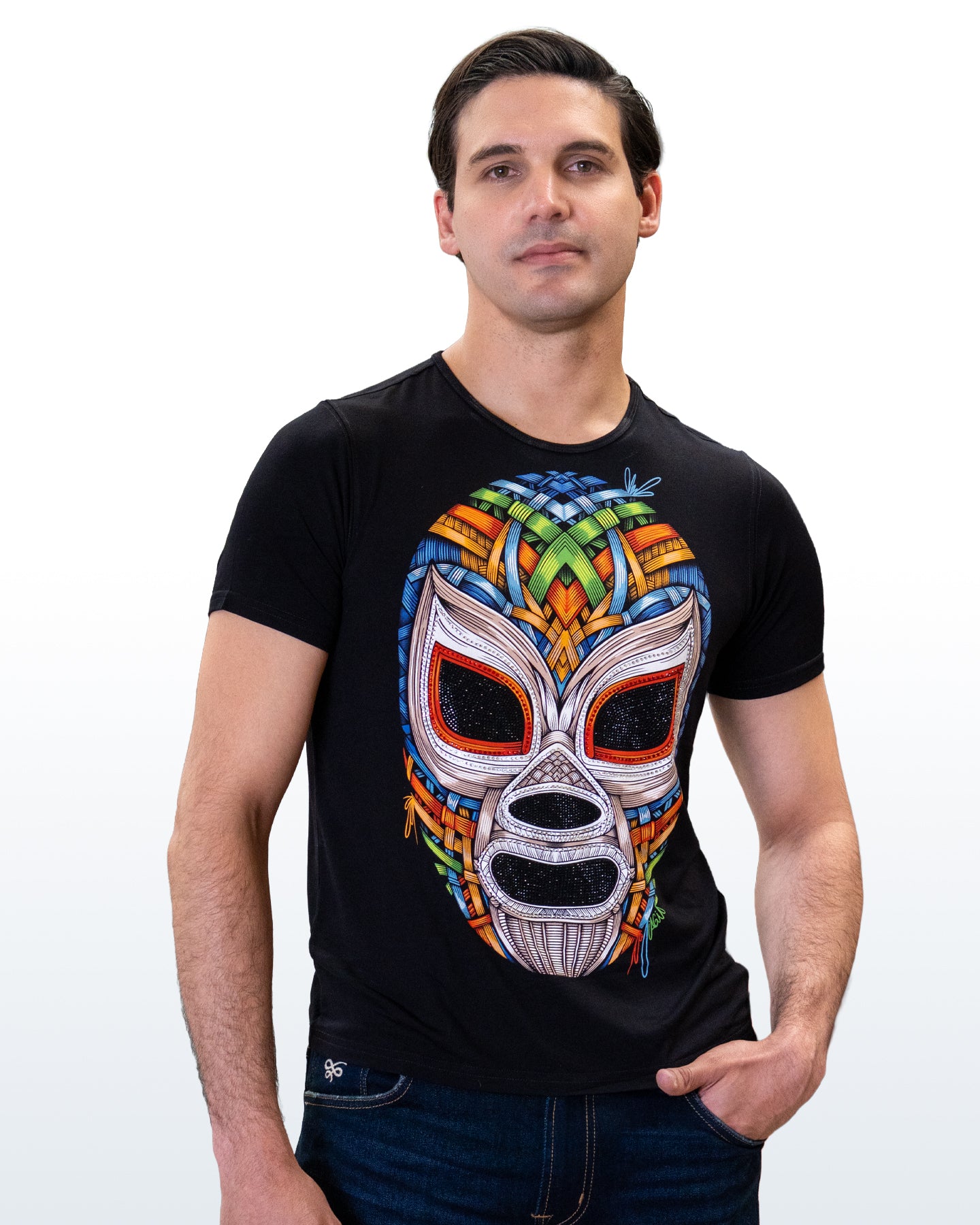 La inspiración de este modelo es la clásica máscara de luchador utilizando la técnica de tejido de mimbre responde a una propuesta de fusión cultural y artesanal que busca reinterpretar uno de los elementos icónicos la lucha libre combinado con la técnica de tejido de este material natural evoca conceptos como resistencia, flexibilidad y dedicación artesanal, cualidades que también pueden asociarse simbólicamente al luchador.