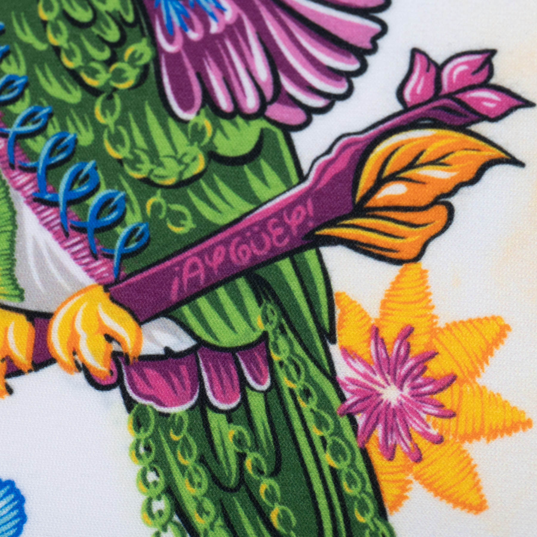 Vestido de niña color blanco. Diseño inspirado en colibrí, el mensajero de buenos deseos, y en las flores de los bordados tradicionales.