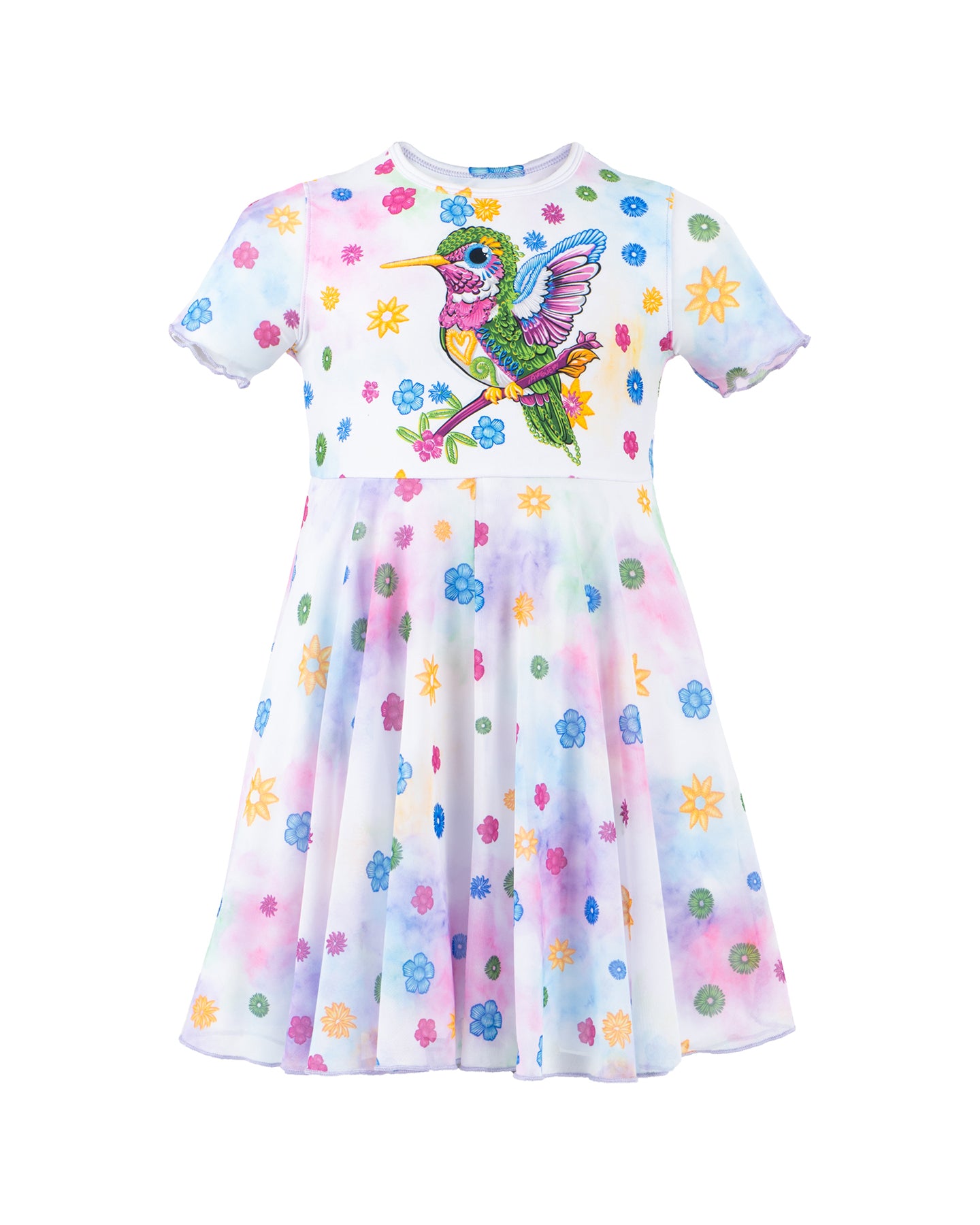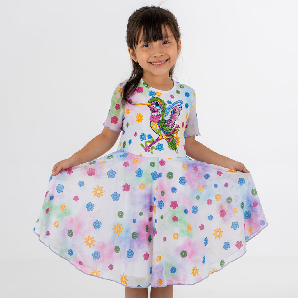Vestido de niña con estampado de colibrí- Modelo SOÑADO