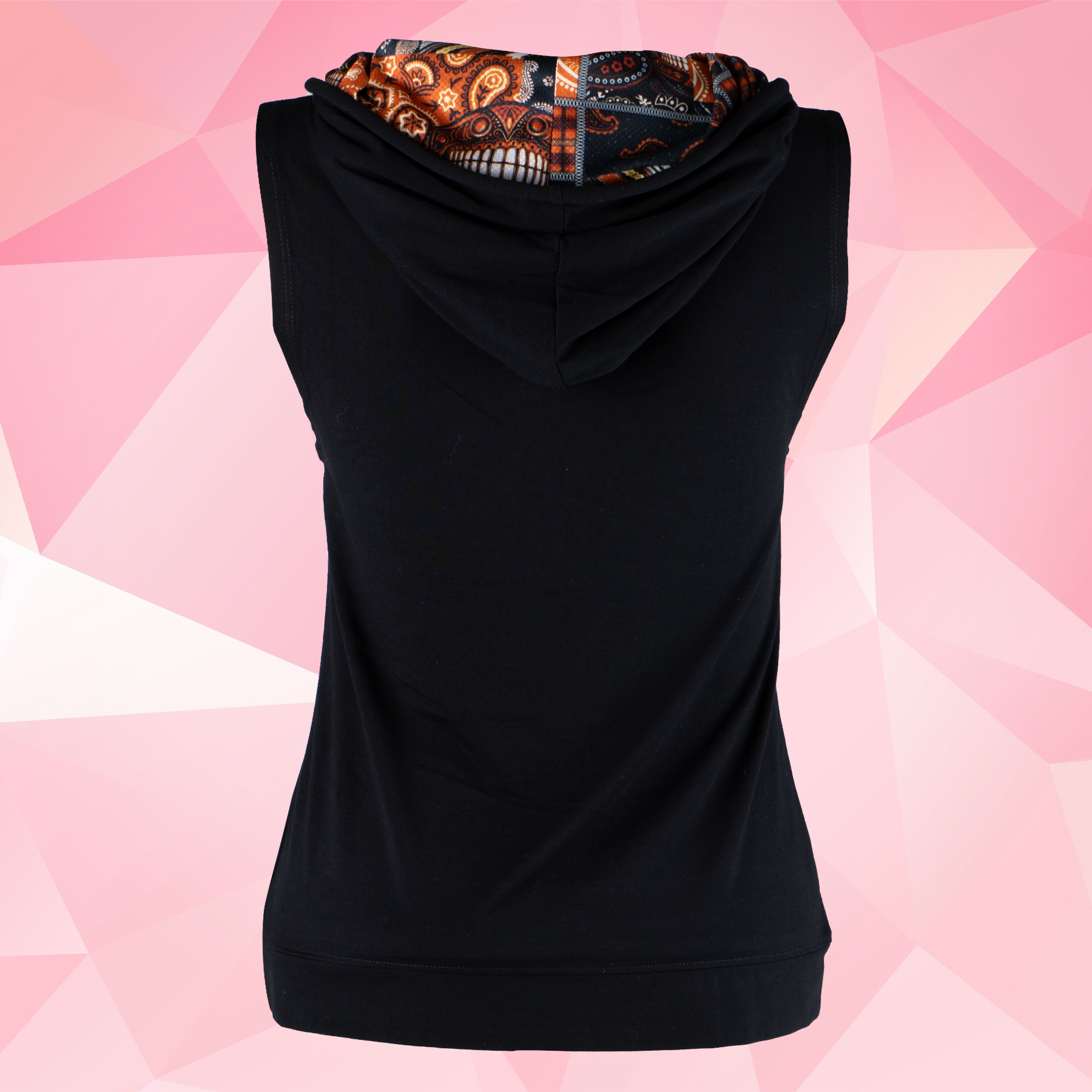(playera-sudadera de mujer sin mangas y gorro con tela sublimada).
