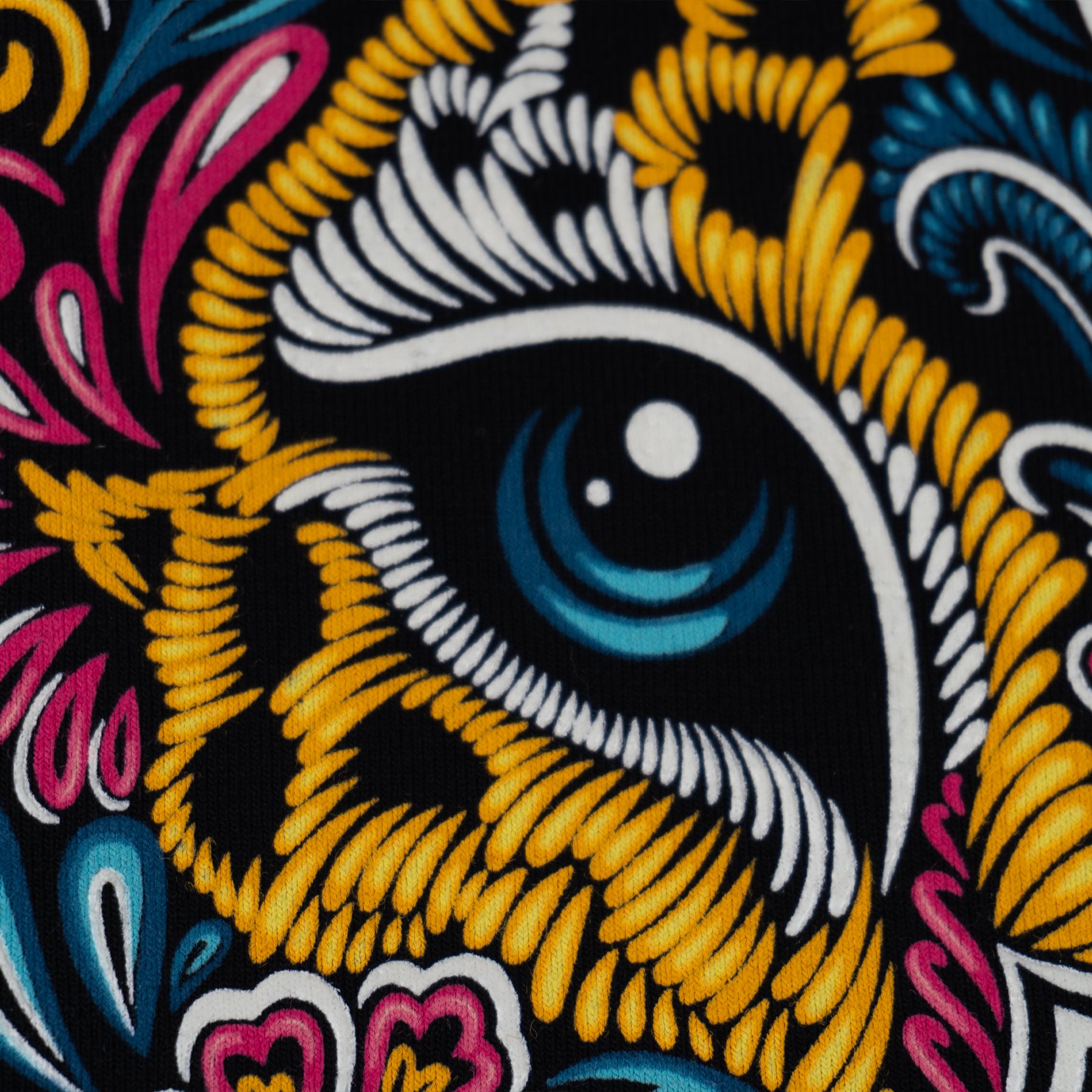 Diseño inspirado en el emblemático jaguar su belleza y estilo decorado a la ¡Ay Güey! el dibujo simula la textura de los hilos que se emplean en los bordados.