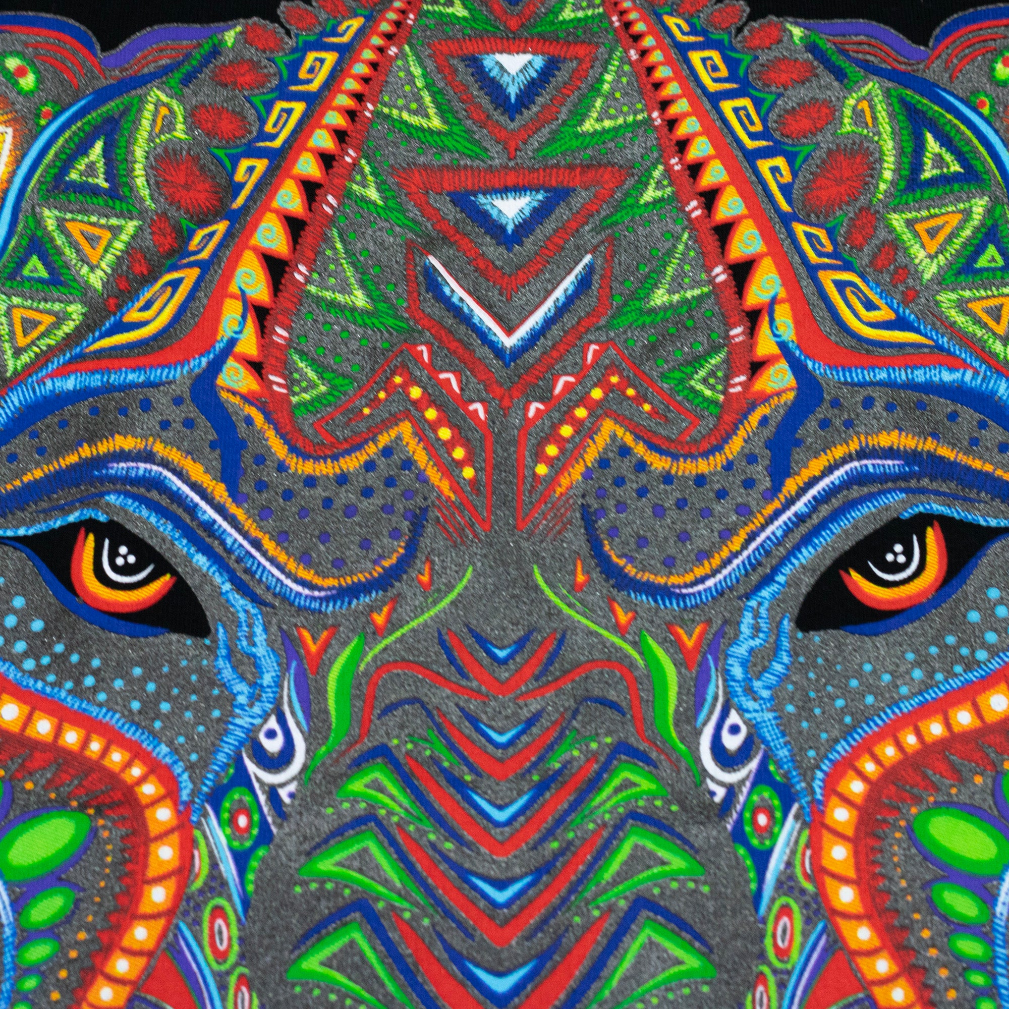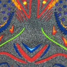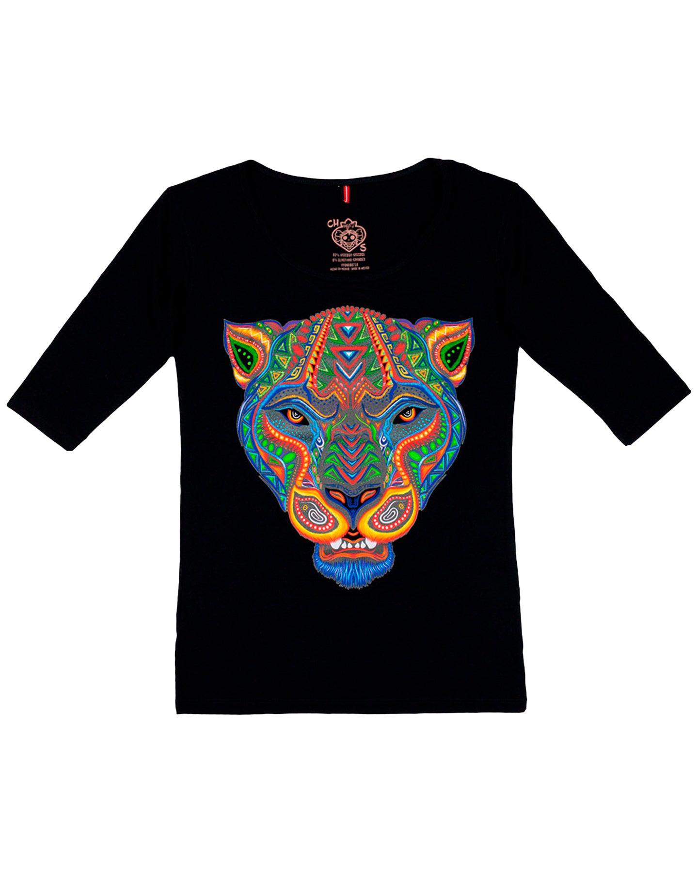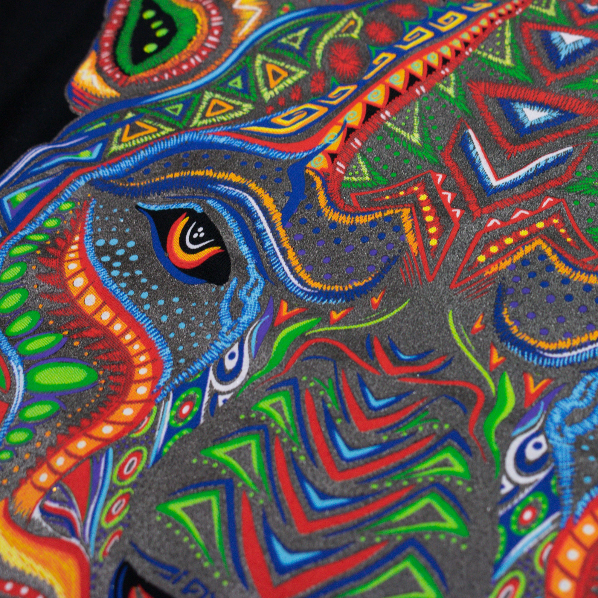 Diseño inspirado en el jaguar y su importancia para la cosmogonía de las culturas prehispánicas de Mesoamérica, combinando con el arte wixarika.