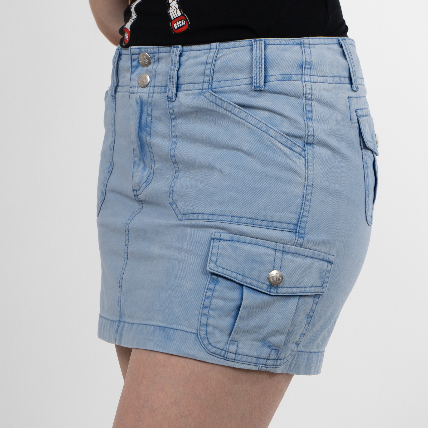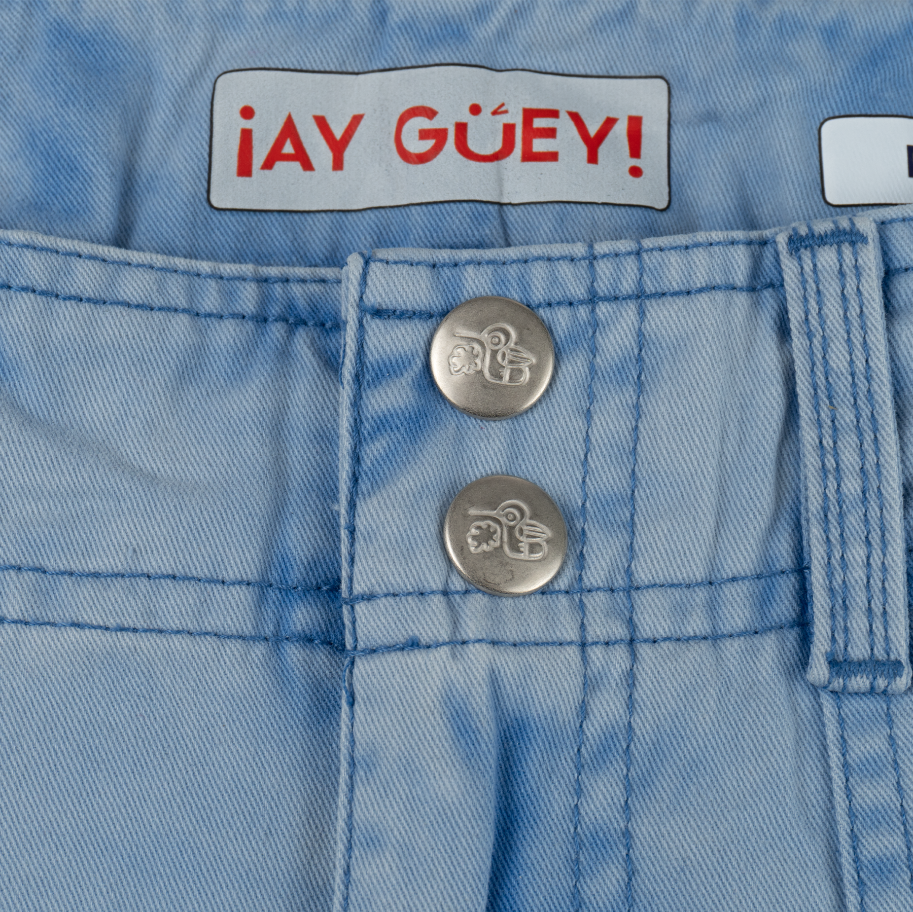 La falda Picosita de mezclilla es perfecta para un look moderno y atrevido. Con su corte corto y botones con figuras de colibrí, esta falda te hará sentir segura y con estilo. Además, cuenta con bolsillos laterales para mayor comodidad. ¡No te quedes sin ella!