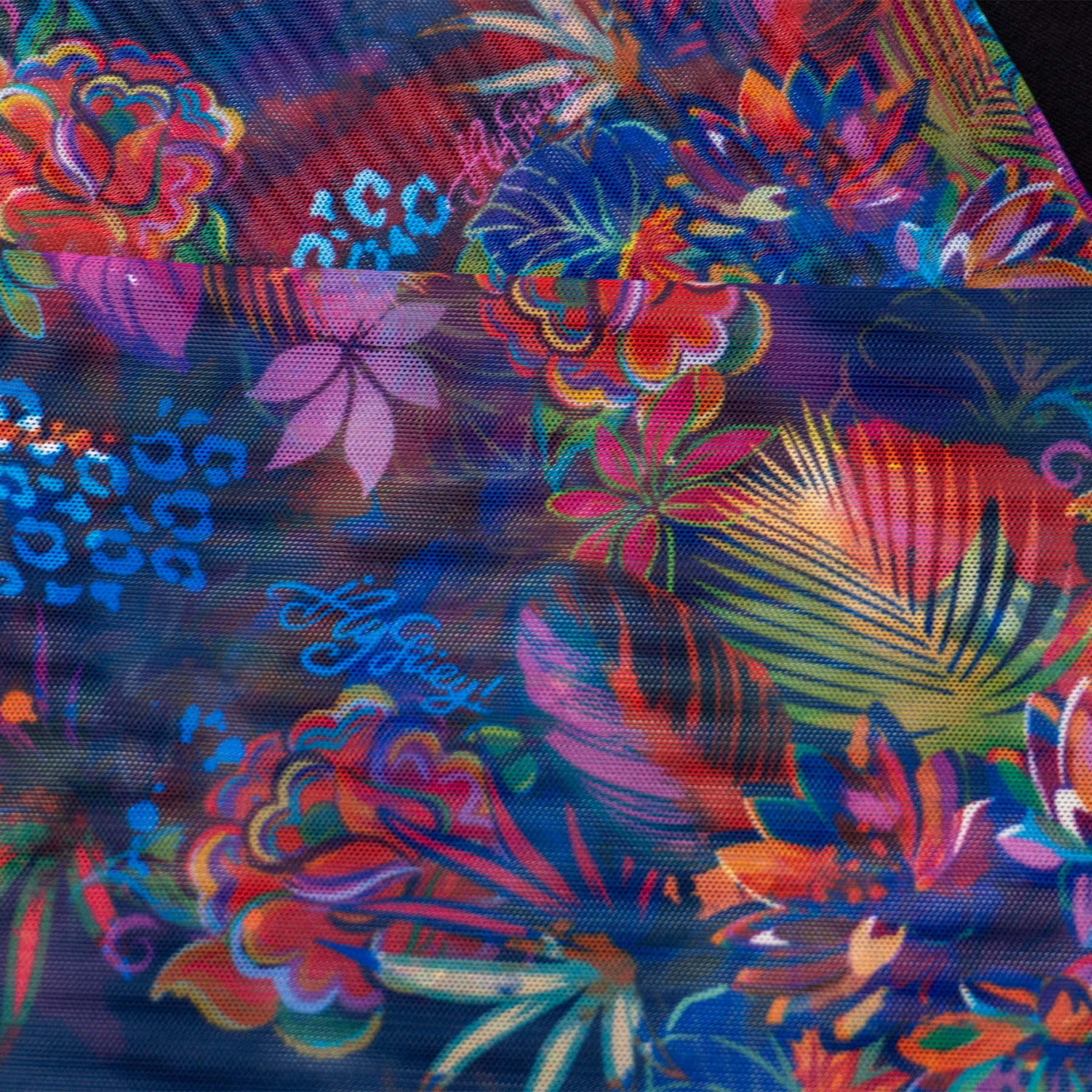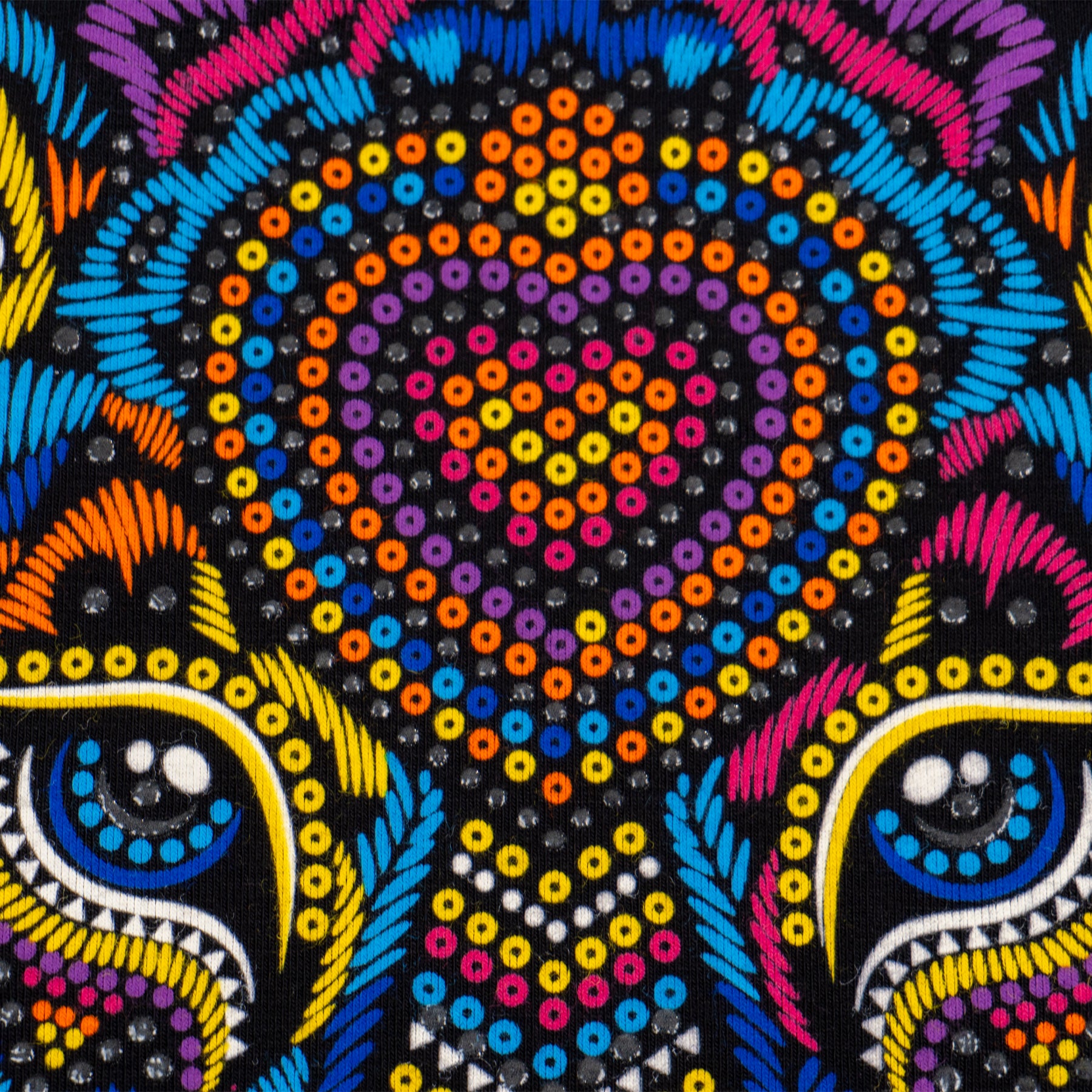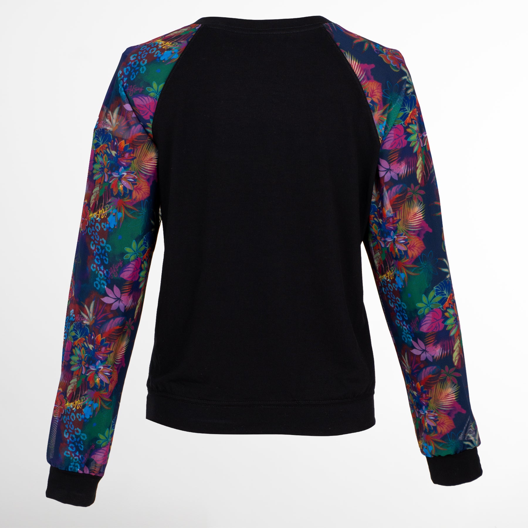 El jaguar, un felino majestuoso y enigmático, es uno de los tesoros más preciados de la biodiversidad mexicana. Este magnífico felino no solo es el protagonista de la selva, sino también un guardián de nuestras tradiciones y leyendas. En la frente del jaguar esta un corazón con estilo huichol lleno de la vibrante energía. La tela de las mangas esta inspirada en la selva y sus elegantes colores.