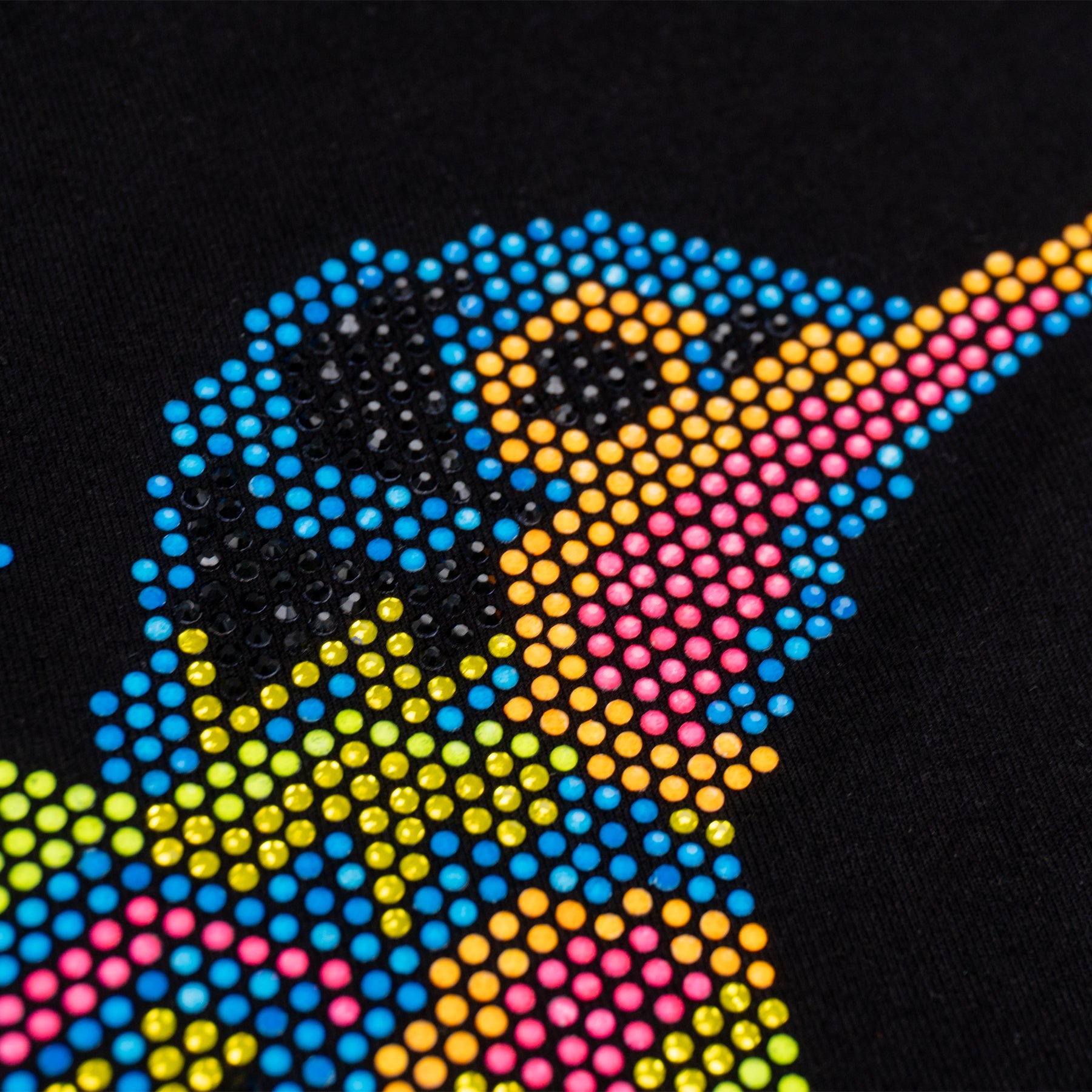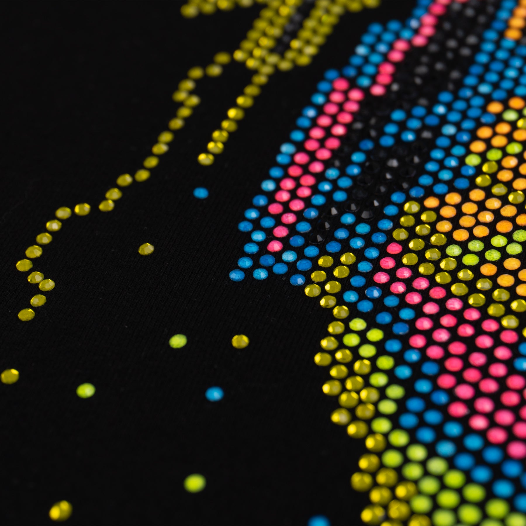 ♦️Playera para mujer con aplicación de pedrería neón y brillante - Modelo PAJARITOS A VOLAR