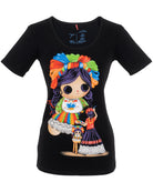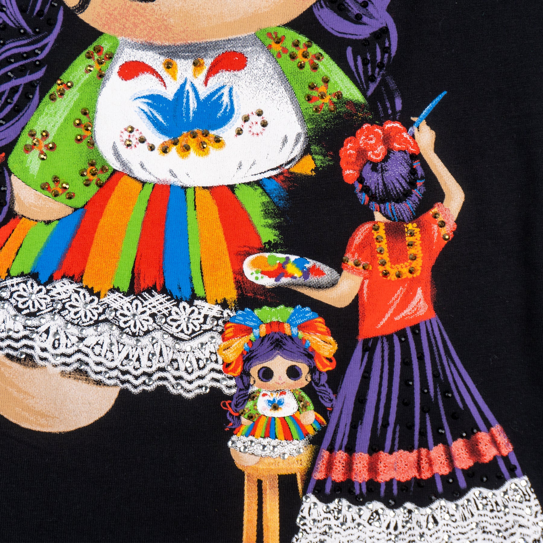 ♦️Playera estampada con aplicación de pedrería para mujer - Modelo PINTORA DAMA