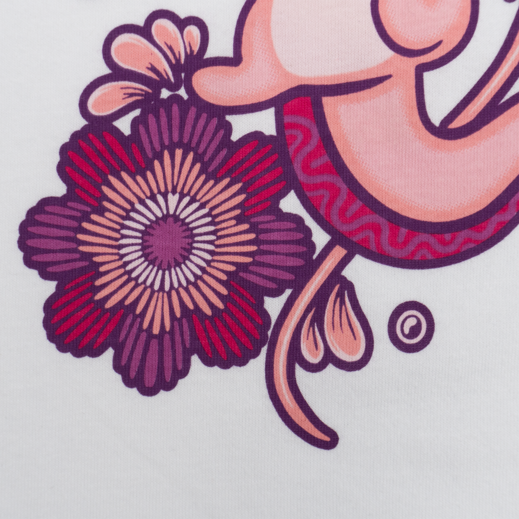 ¡Déjate encantar por Tito! Inspirada en el ajolote, esta playera blanca, estampado en tonos rosas de un curioso personaje rodeado de flores. Siente la conexión con la naturaleza y el encanto de la vida con Tito.