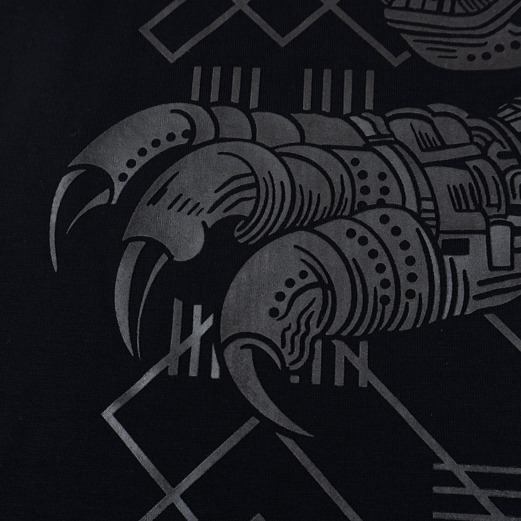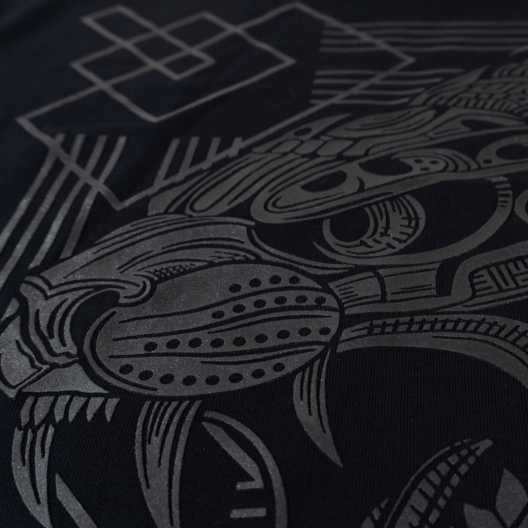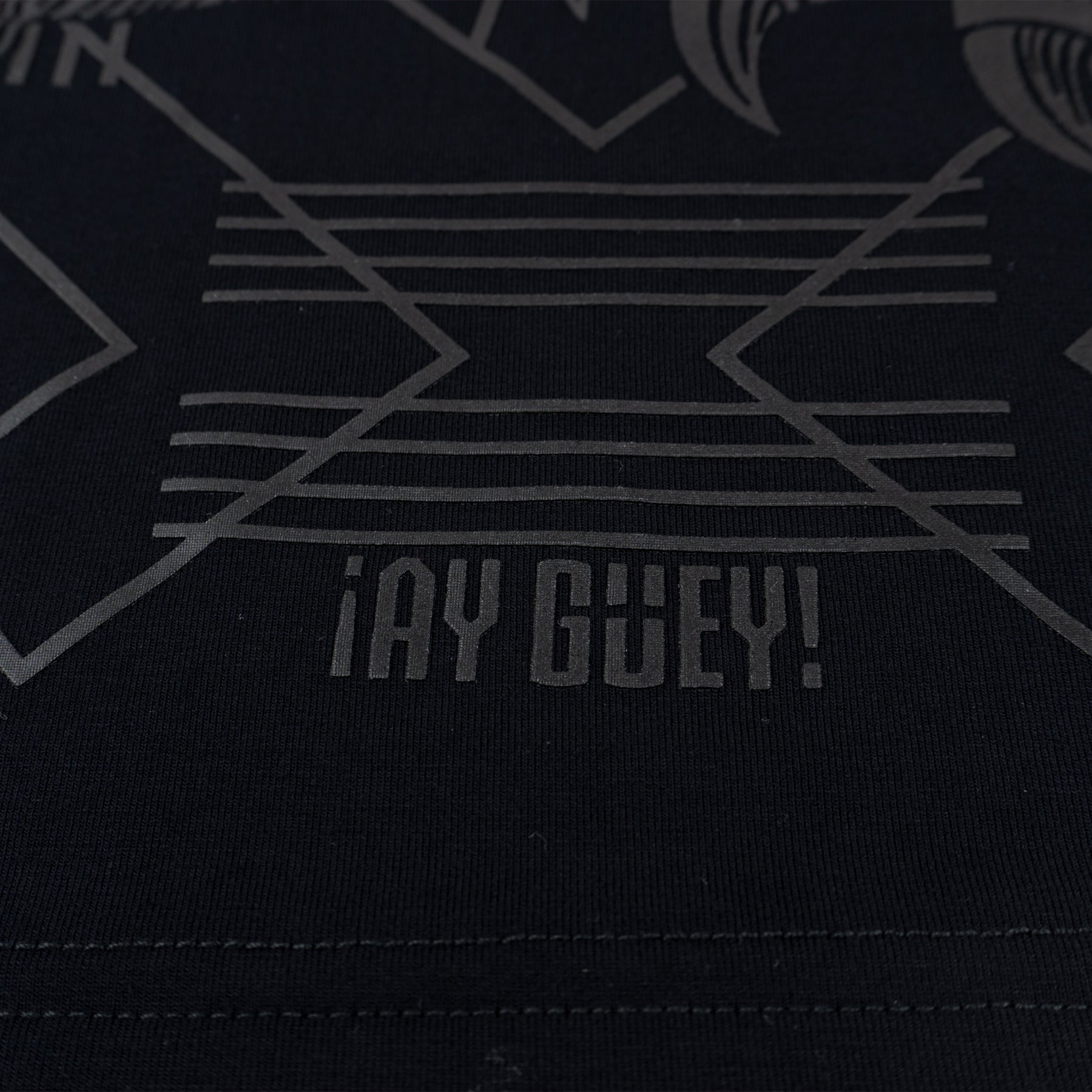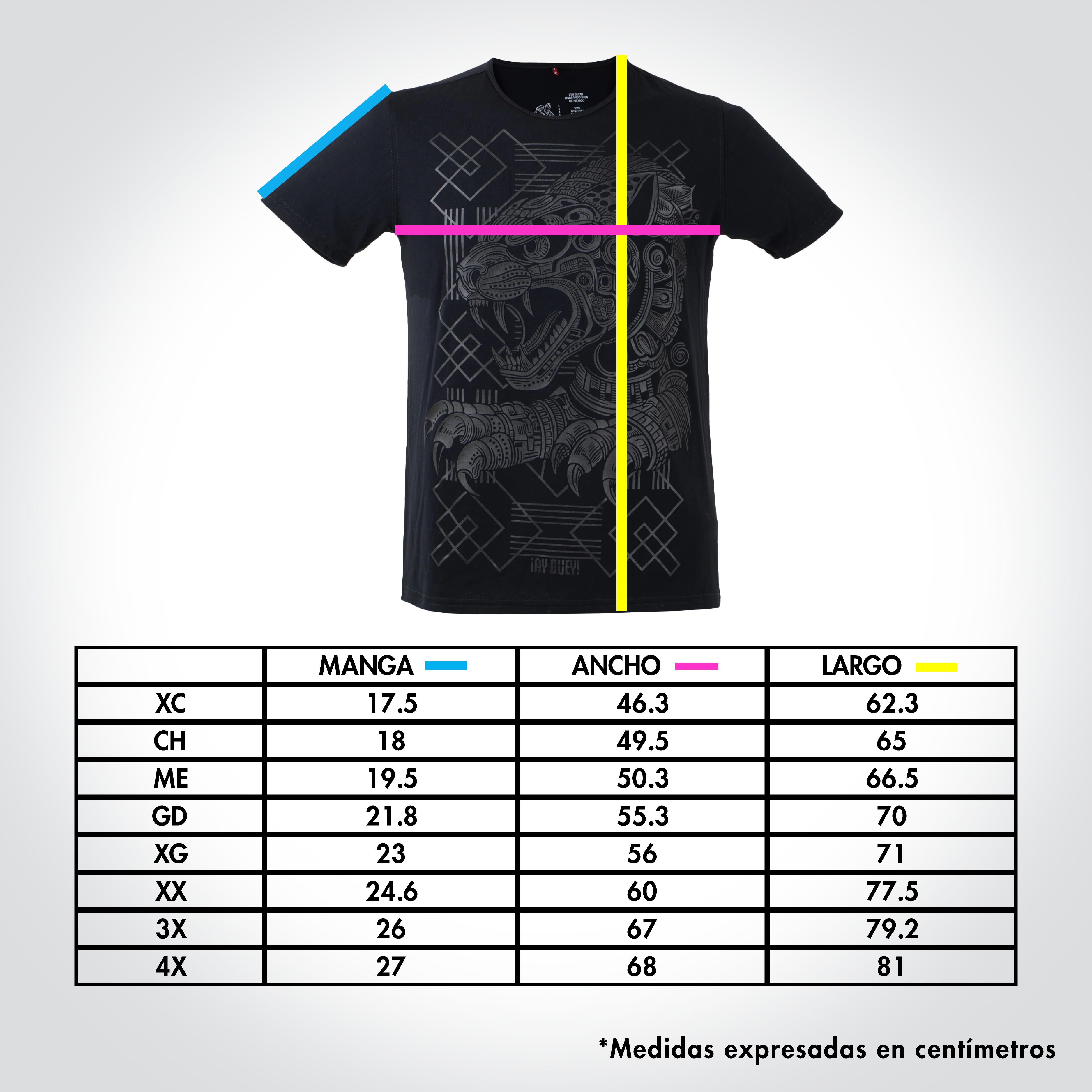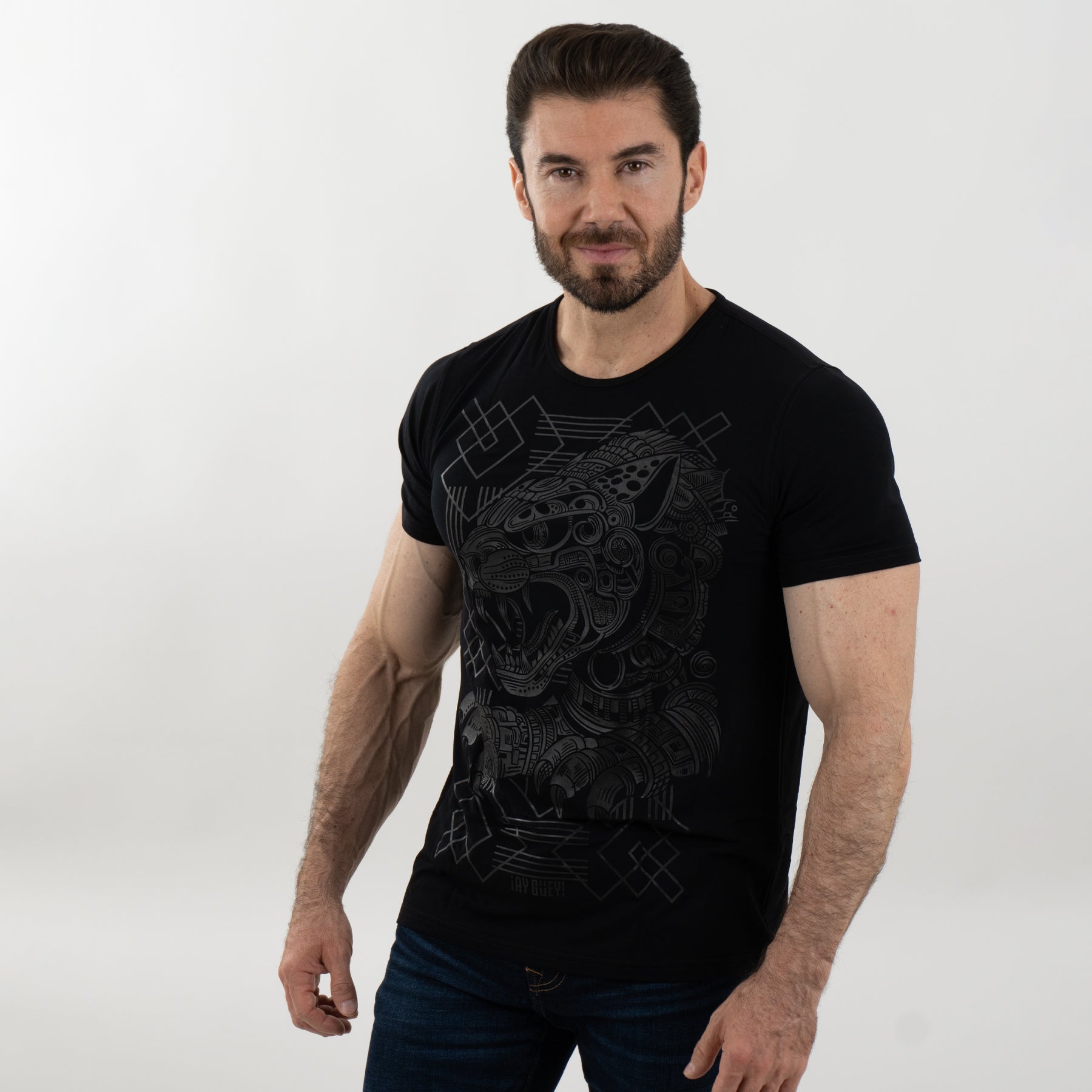 Playera de caballero cuello redondo con una aplicación de alta densidad negra, inspirado en la fuerza y elegancia del jaguar. El estampado negro sobre negro lo hace un elemento versátil y moderno. Añade un toque audaz y sofisticado a tu guardarropa.
