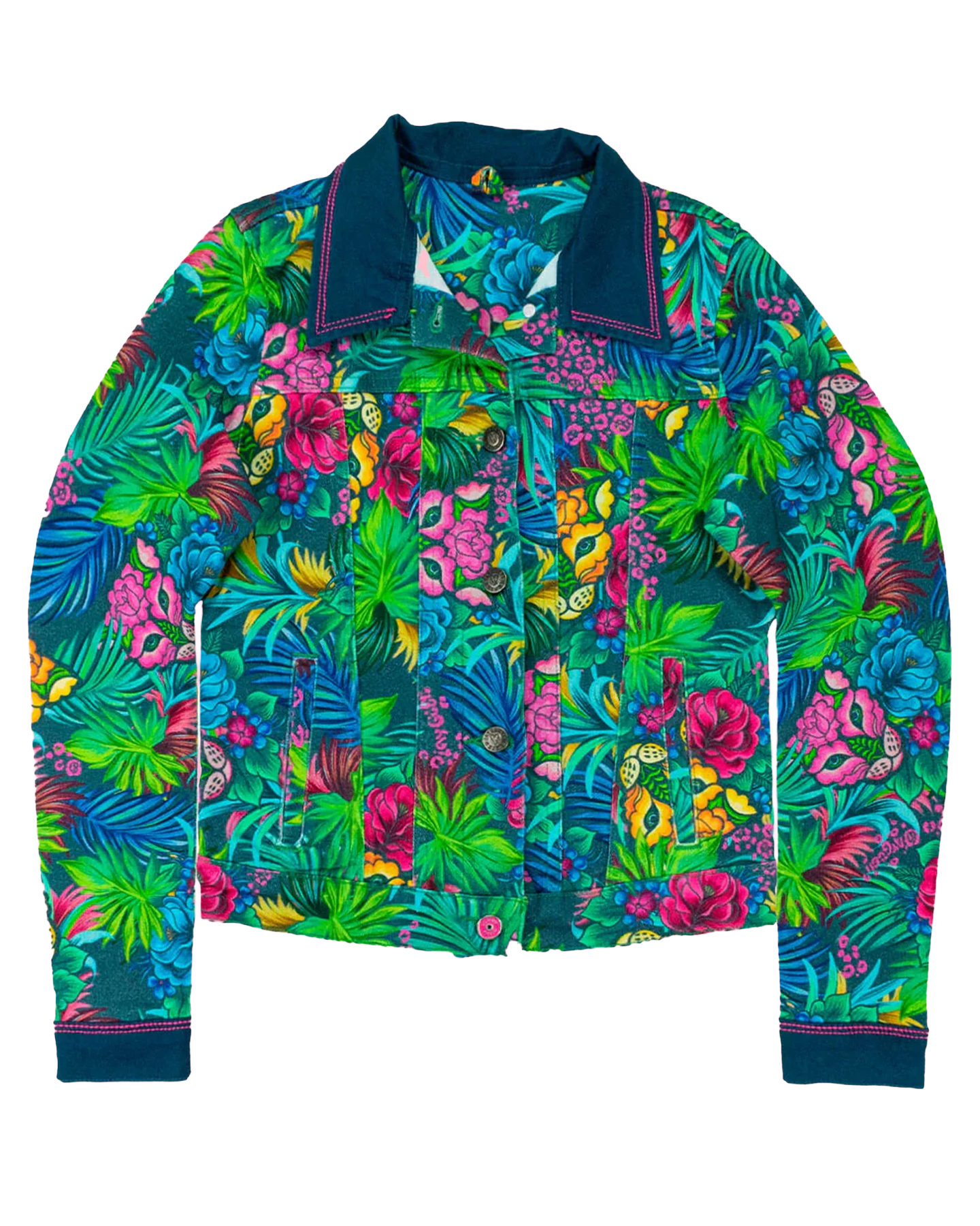 Diseño que combina, la flora selvática del estado de Chiapas, con flores oaxaqueñas, mismas que forman un jaguar, referencia al sur de México y su distintiva selva.