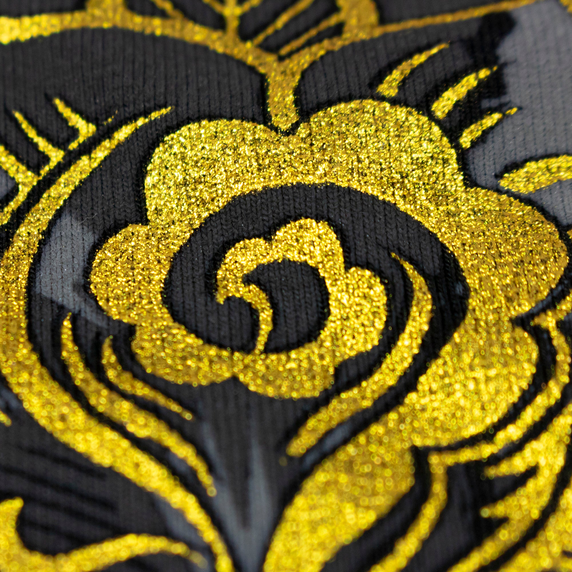 Cuenta con aplicación de tinta shimmer que da ese acabado abrillantado al diseño. El corte es manga larga y tiene apertura amplia en los hombros.