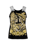 Camiseta sin mangas para mujer con estampado y tirantes con encaje - Modelo A-DORADOS