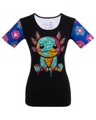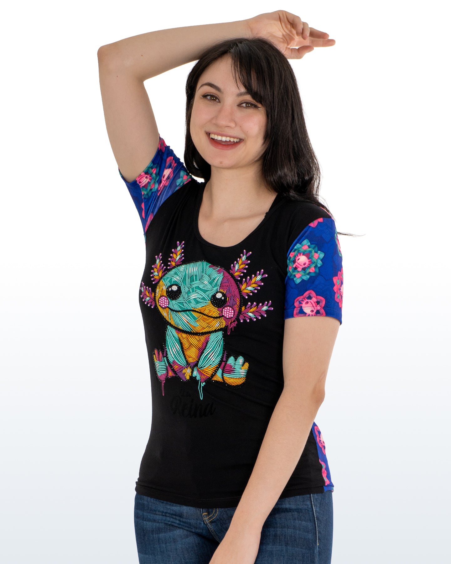 La inspiración de este modelo es el ajolote interpretado en un bordado de colores vibrantes una fusión de arte, cultura y conciencia ecológica. Es una forma de llevar consigo un símbolo de identidad mexicana, honrar las tradiciones textiles indígenas y contribuir a la preservación de una especie emblemática. Cada puntada y color en la playera cuenta una historia de resiliencia, conexión y esperanza.