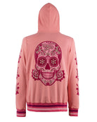 Diseño Central: Espectacular Calavera de Azúcar en la espalda, detallada con intrincados grabados de flores simbólicas que celebran la vida y la memoria.