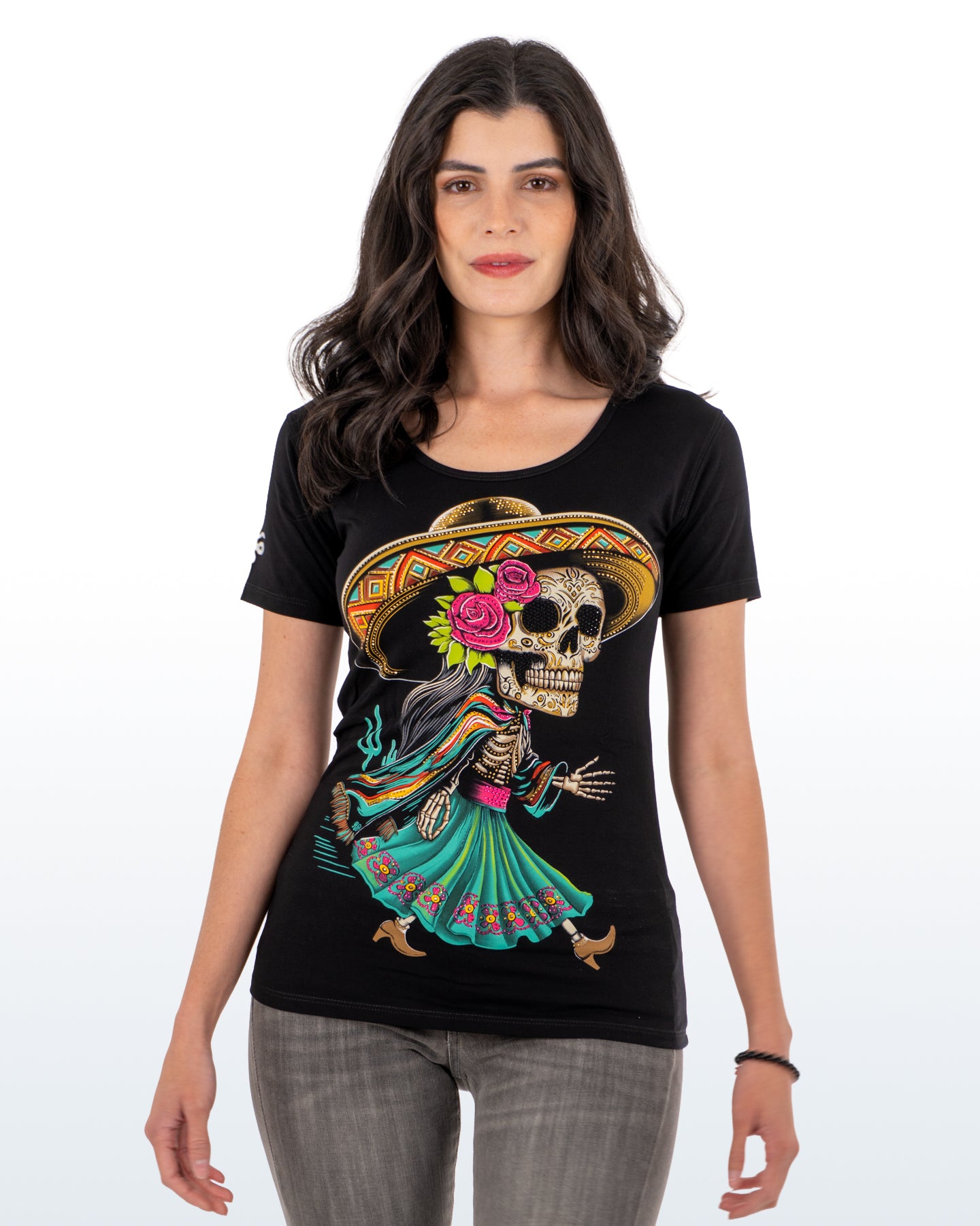 Celebra una de las tradiciones más queridas de México con esta playera que honra la alegría y el recuerdo de nuestros seres queridos que ya no están. Perfecta para unirte a las festividades de la temporada.