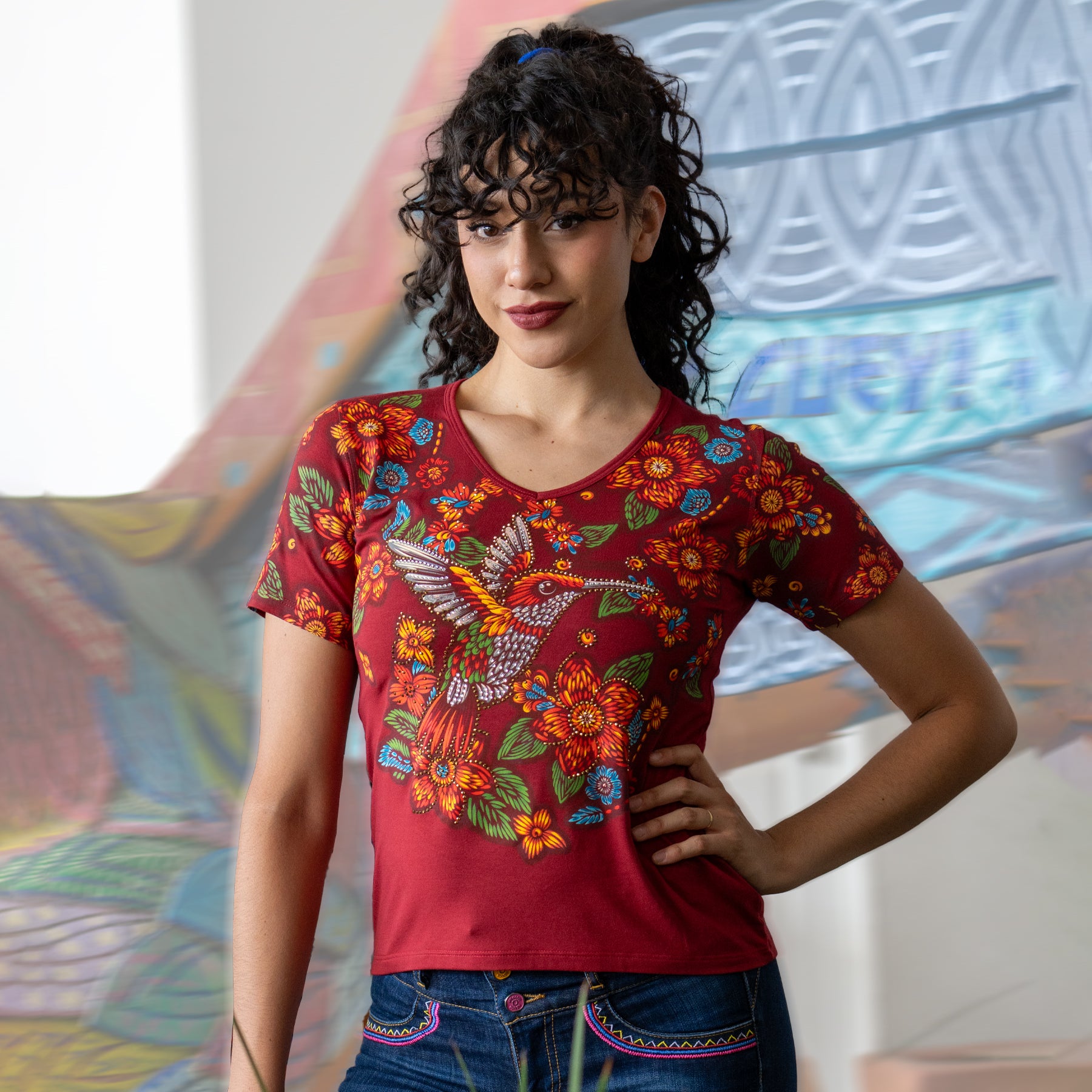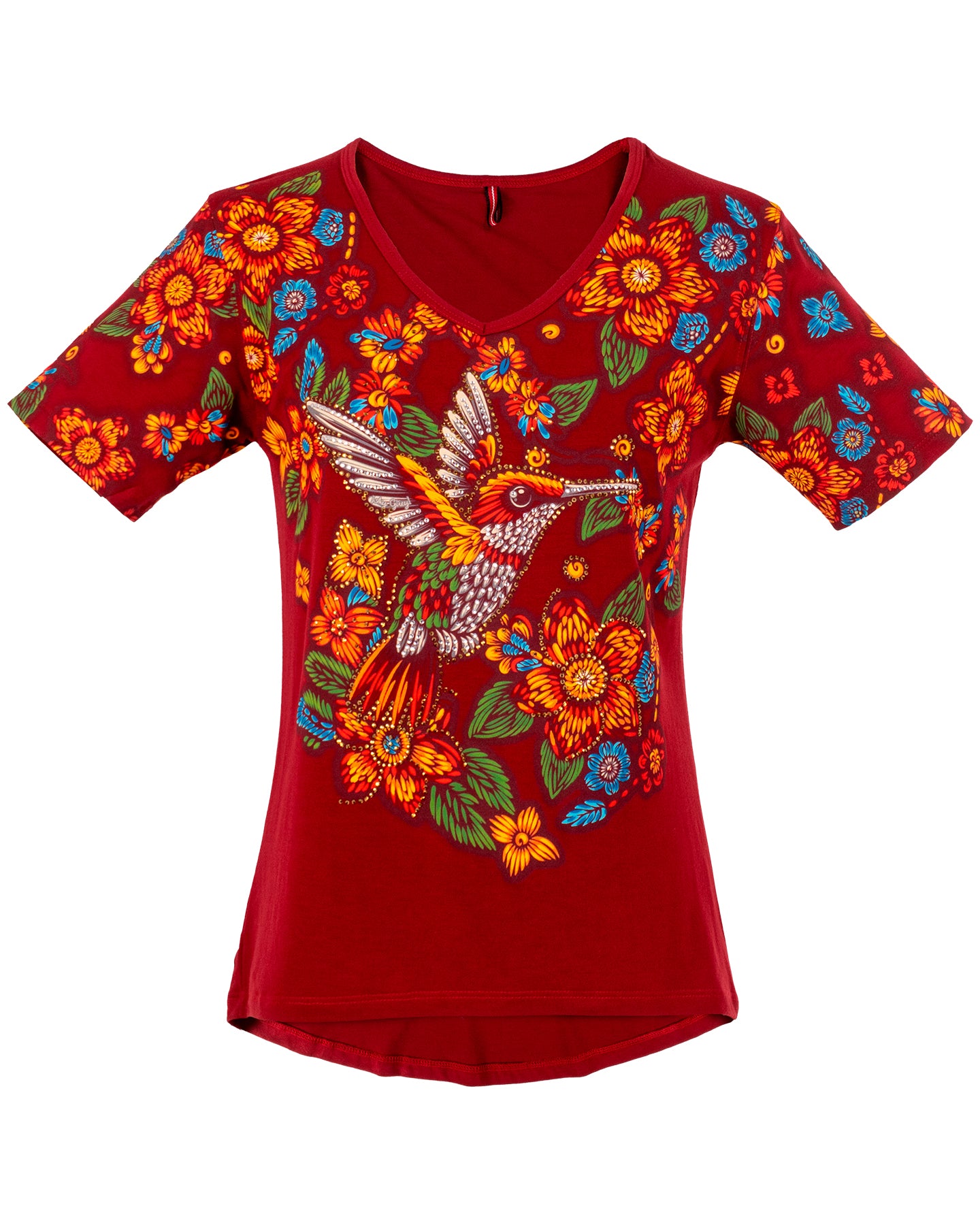 Playera estampada con aplicación de pedrería para mujer - Modelo VUELA VUELA