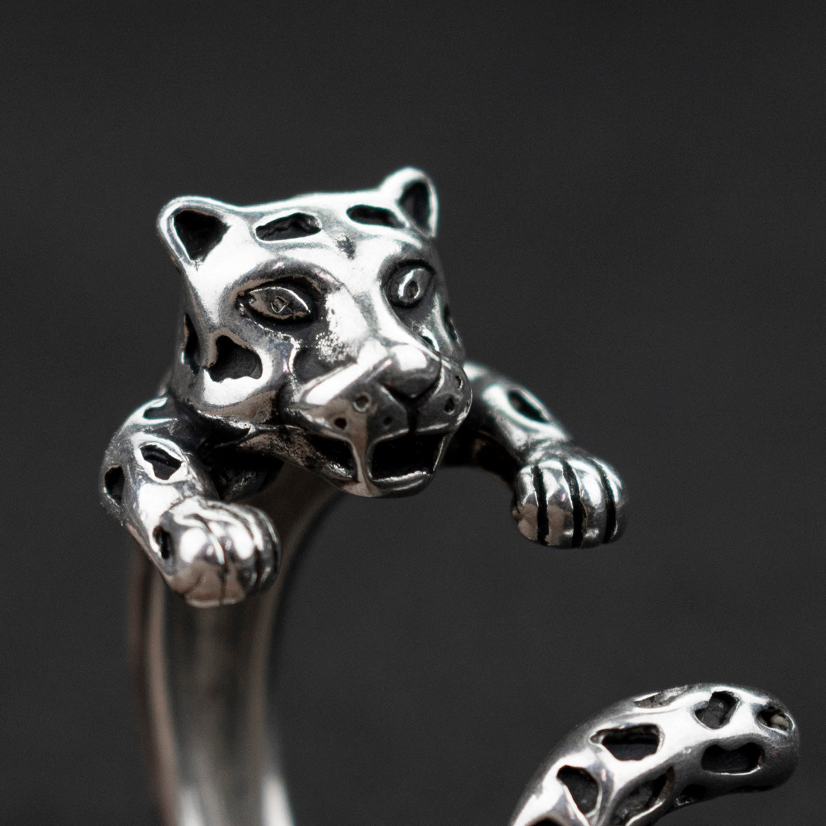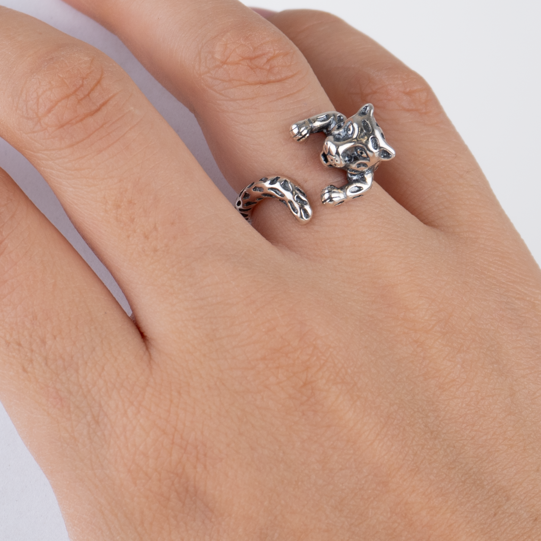Anillo ajustable en forma de jaguar, simulando que abraza tu dedo.