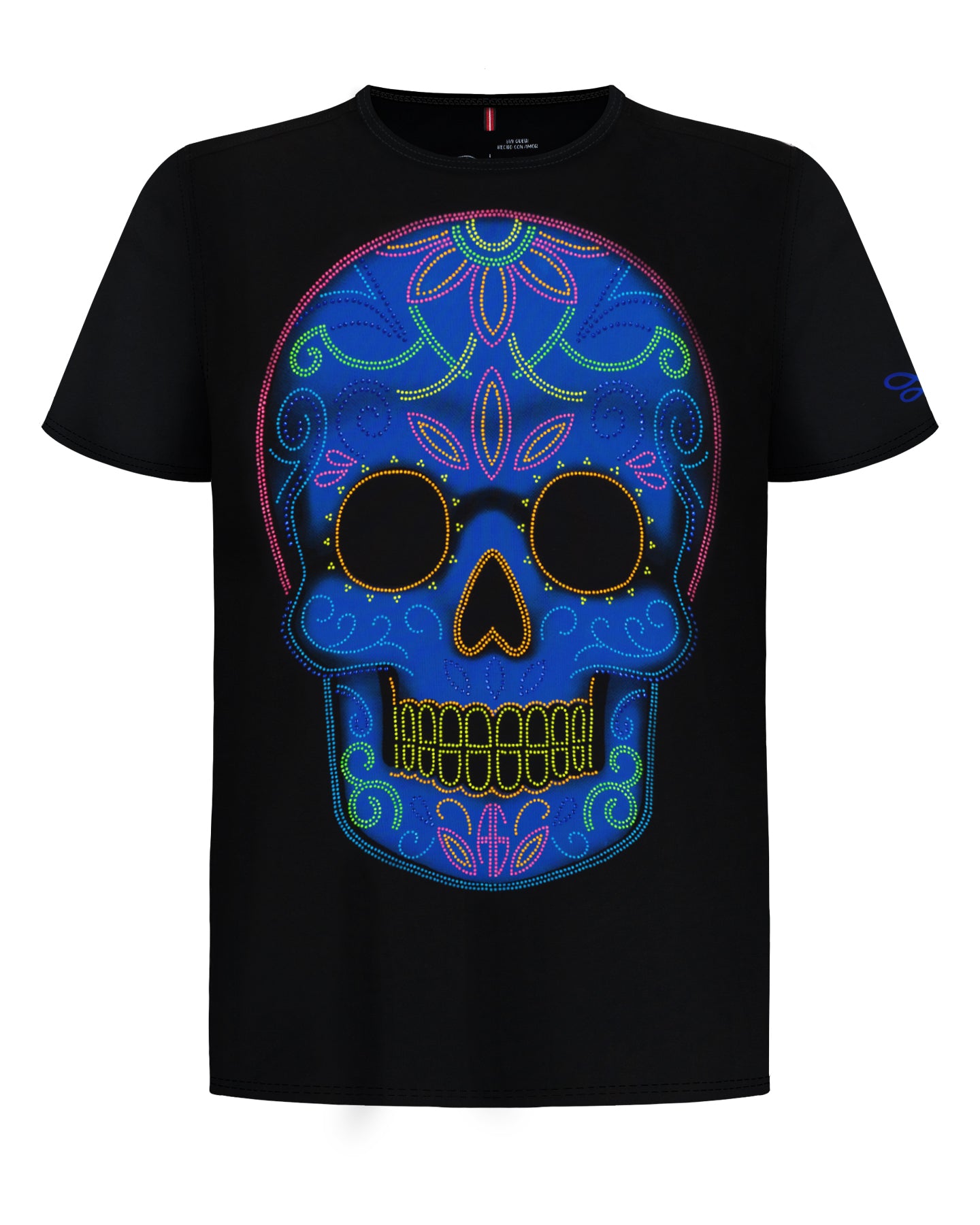 Playera estampada con aplicación de pedrería para hombre - Modelo AZUUÚCAR