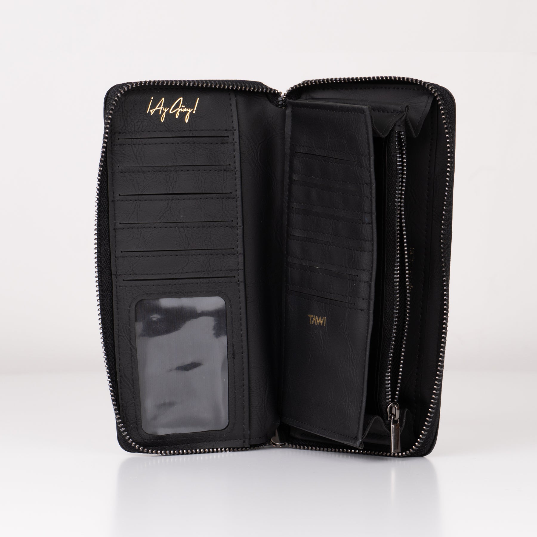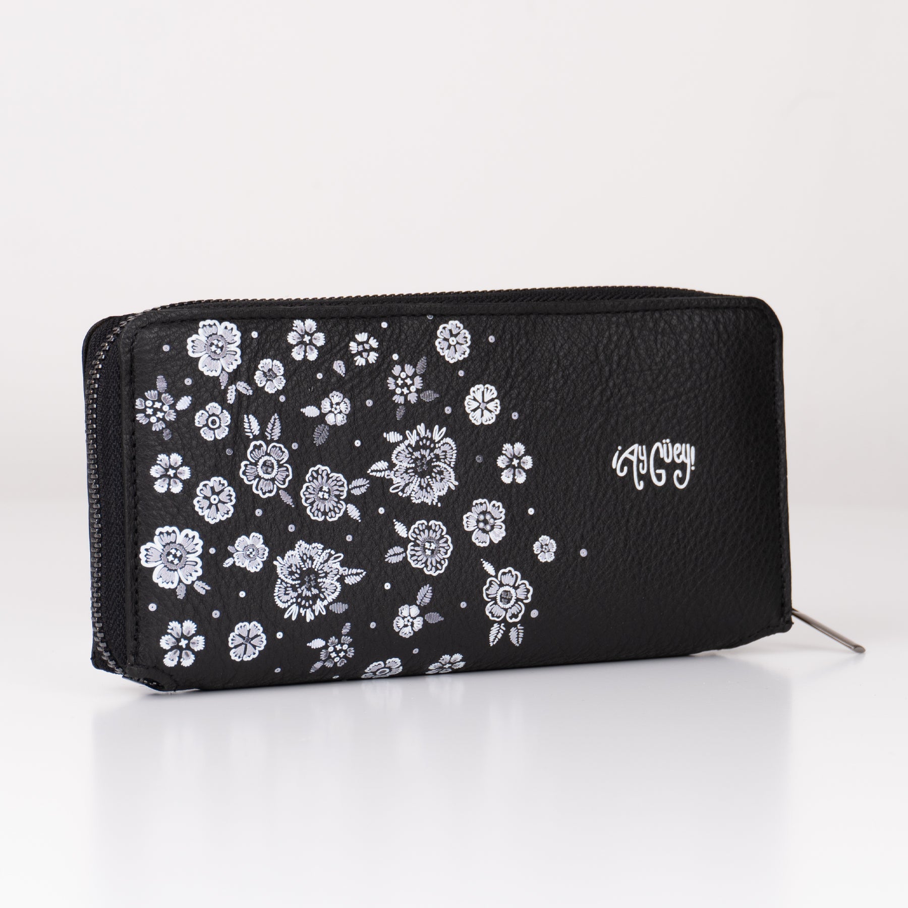 Cartera amplia de dama, con 3 bolsillos, tarjeteros y monedero.