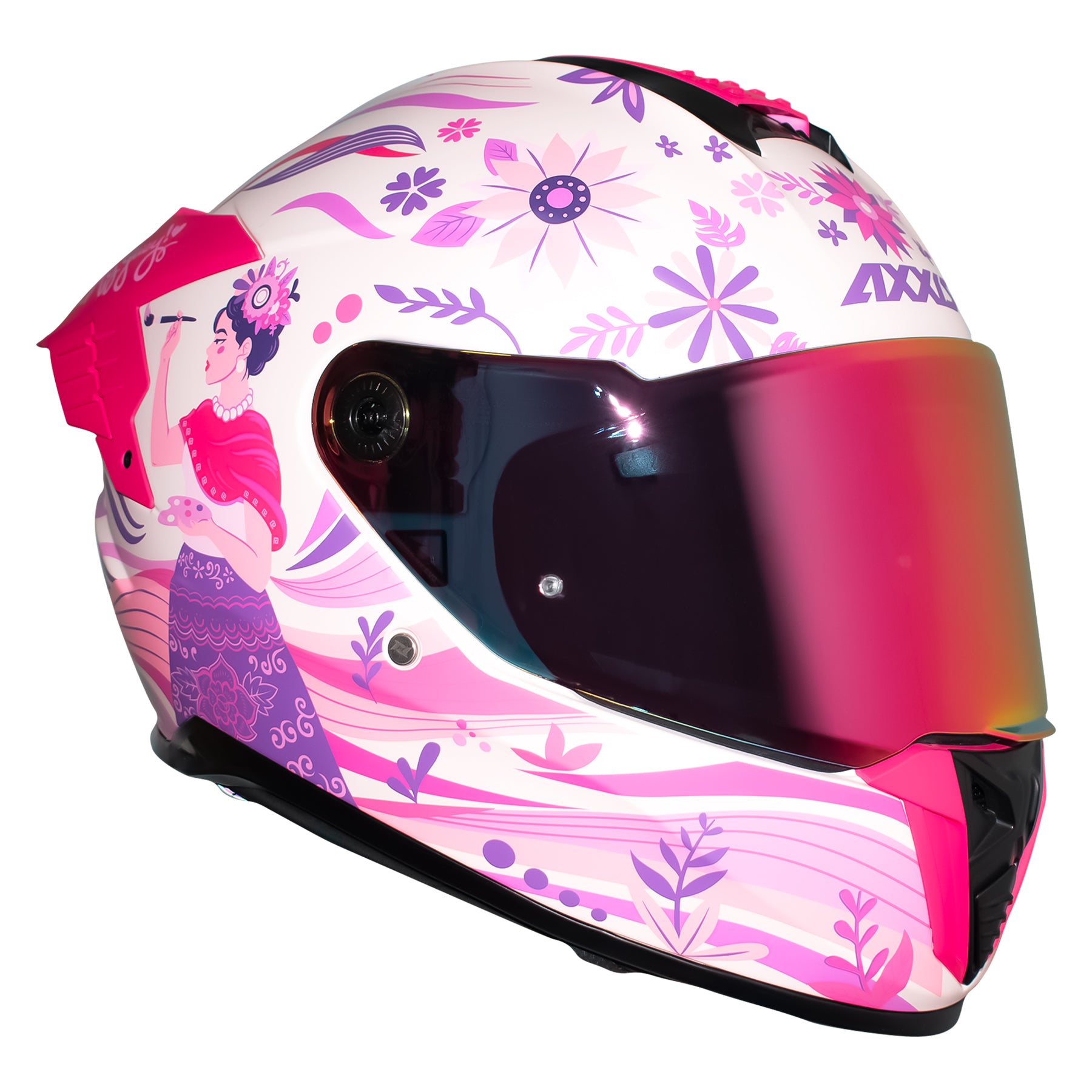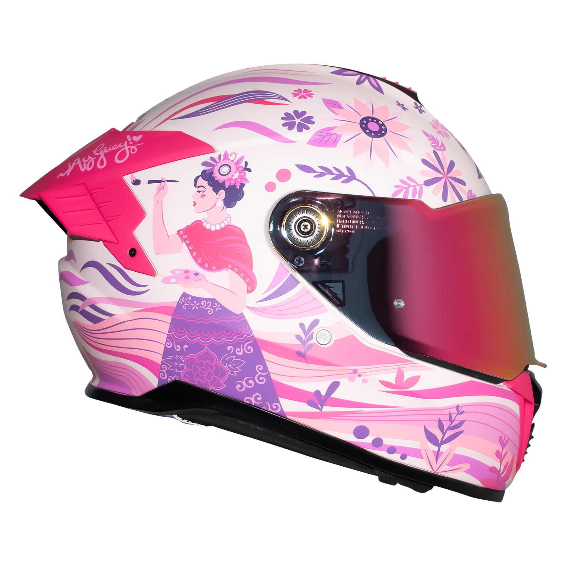 Los gráficos son homenaje a la representación artística de una pintora, capturada en un momento de inspiración y creatividad. Este detalle, que celebra el talento femenino y el arte mexicano, convierte a este casco en una declaración de estilo y un homenaje a la pasión por la pintura y la velocidad.