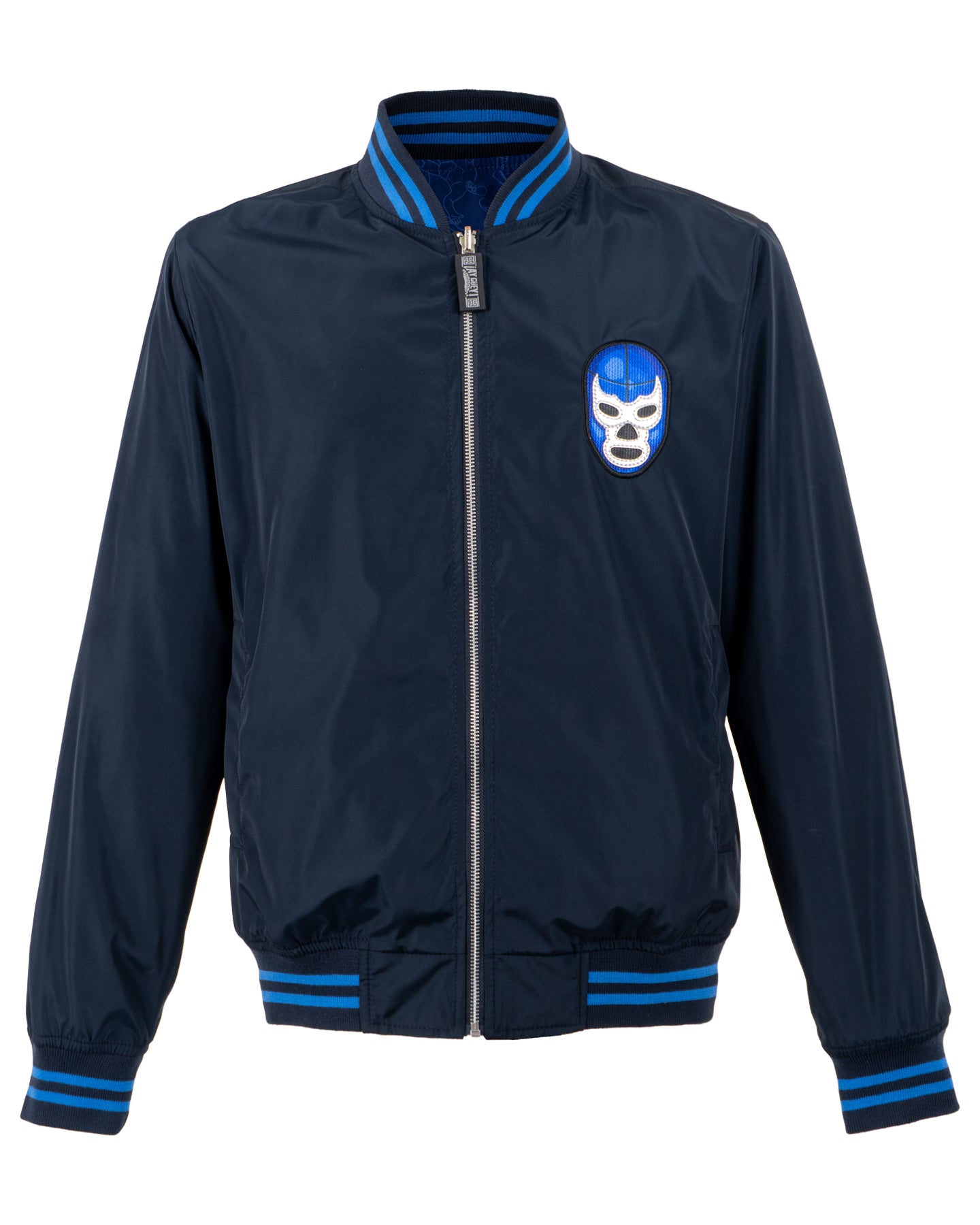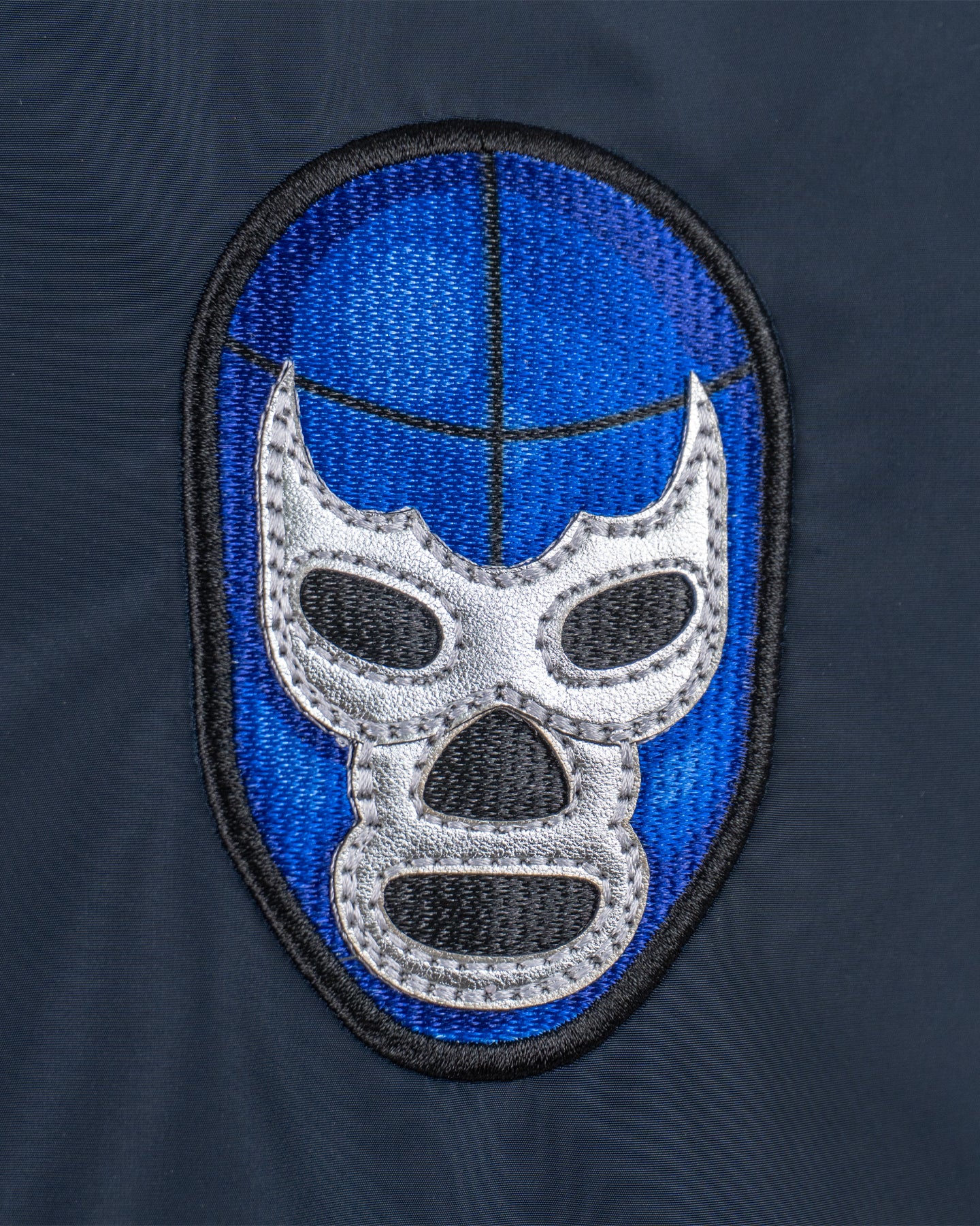 Esta chamarra bomber reversible, creada en colaboración con el legendario Blue Demon Jr., celebra una historia de triunfos y pasión. Luce con orgullo los colores emblemáticos de un ícono de la lucha libre mexicana, ¡el espíritu azul en dos versiones para que elijas cómo llevar su legado!
