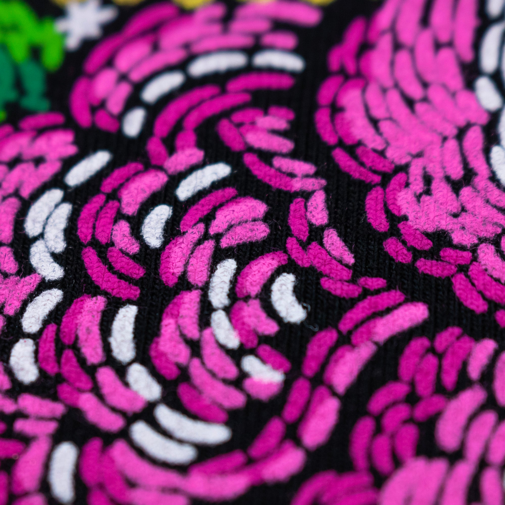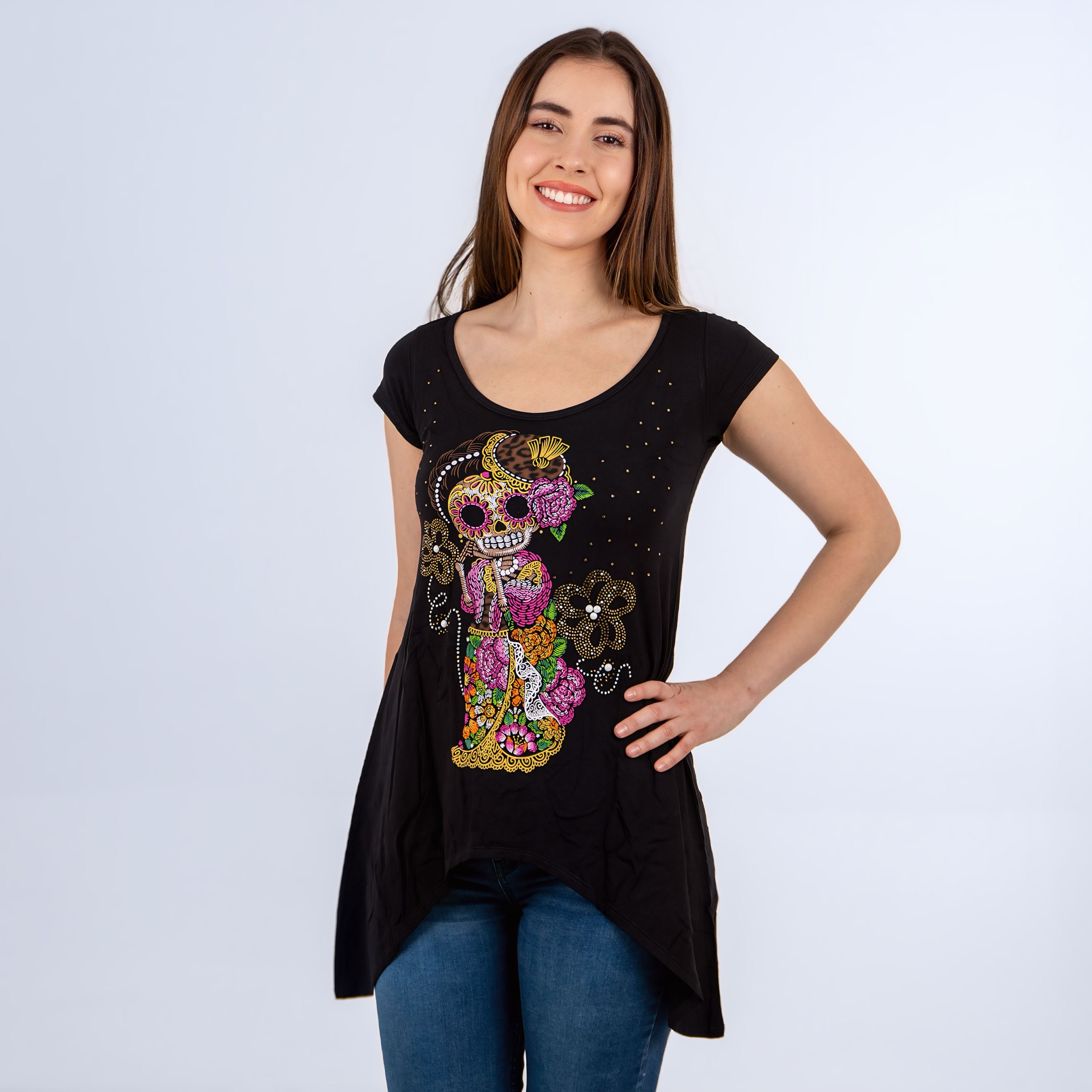 Diseño inspirado en las calaveras de azúcar y en los textiles mexicanos.